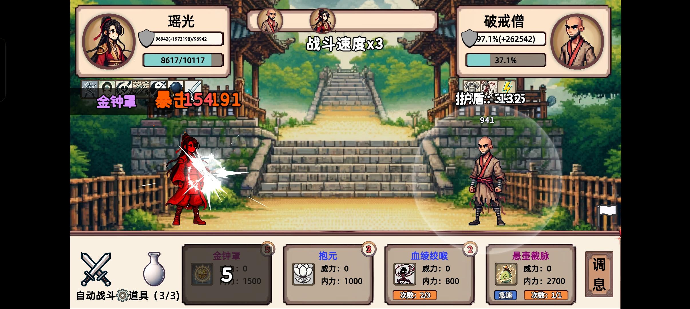 林修涯当前爆发最猛体系,其实还没发育完,还有个一回合加40%攻击(其实这个才是搭配一闪爆发的最核心提升)决心是修两个智慧类书籍学到的。计策带神出或者奔雷之一,一个刚御,剩下两个加威力或者初始剑意,两回合聚气。第三回合秒人。