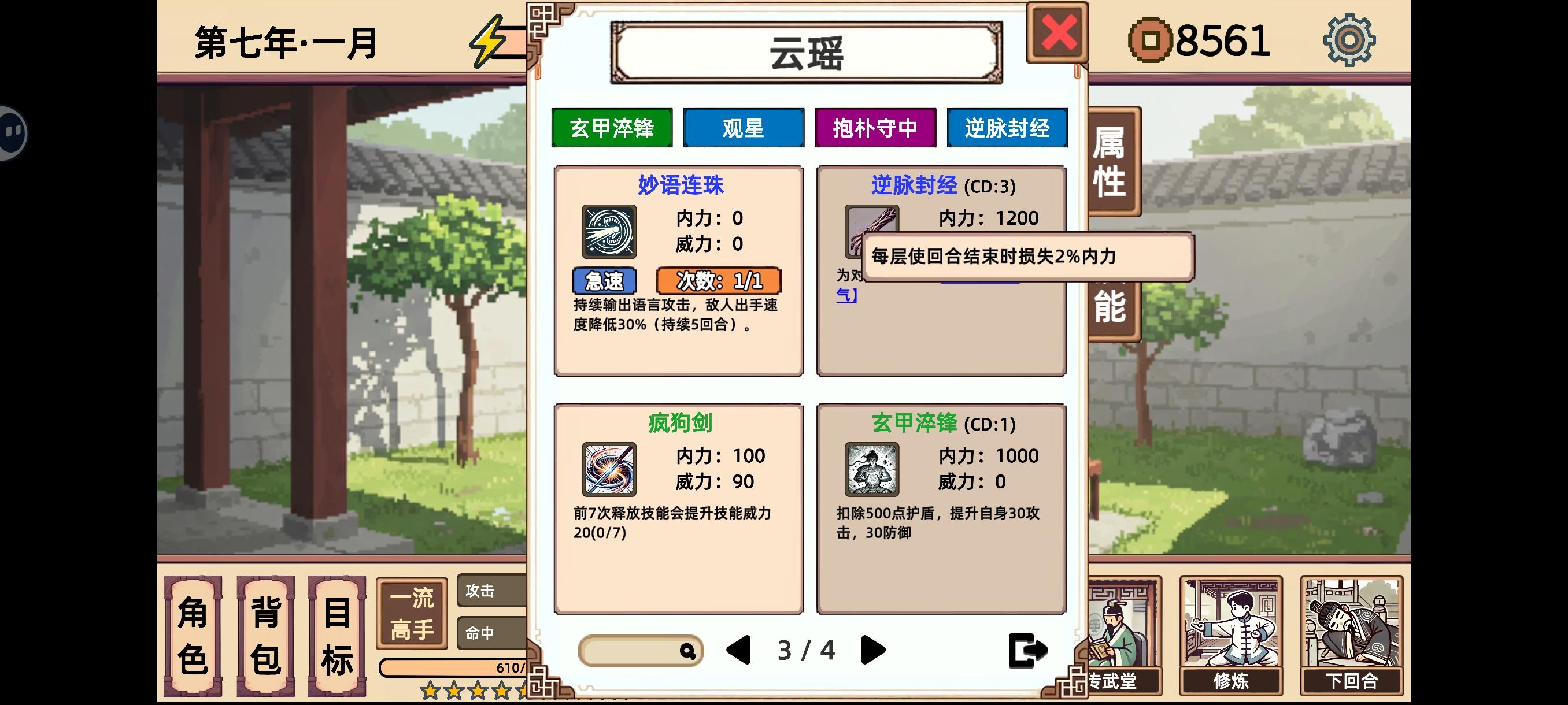 万盾流,每回合1万护盾,堪称隔壁峡谷程咬金,功法用低阶便可打通关