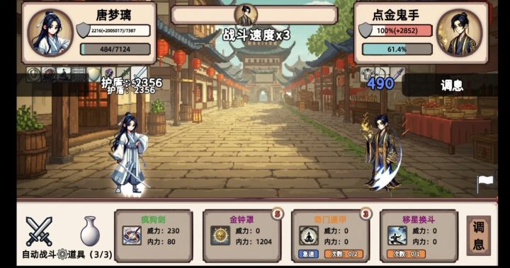 萌新也是第一次打,配的不对,宝物也不对,应该全加血带加血宝物,这货爆发太高了,到这层完全看二刀能不能秒(加上广告起来其实是三下),招式我挖掘的少最后一个技能是没用的,想了几个小时有没有机制能继续过关。降攻35%不行,出招大概是比他快的时候一人一下,比他慢一点是他二我一,考虑守御的话可以用回复加速+60%每回合衰减的组合(其他关都可以用)得支撑到速度比他快才能一人一下。另外就是打进度条,每次自己行动