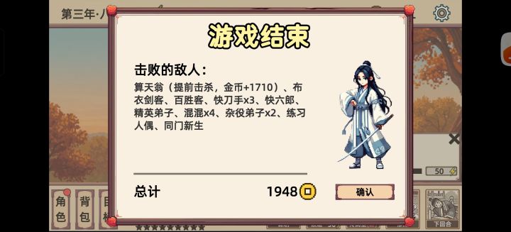角色选单次伤害最高40%的,武痴模式,带谋划加修为的宝物(没有也行,就是会到二流高手的时间晚不少),进去直接开运筹,凑够,催毒(颜色随意),毒爆(颜色越高越好,实在没有可以用风毒代替,就是打的慢点),气和(这个必须蓝色以上,如果运气不好刷到一流高手还没齐就得双生存了),毒涌(也可以用散毒或者上随机毒的武功代替),操作就是一直运筹加谋划,商店刷了看一下有没有上随机毒的武功,然后打boss进去看到剑客