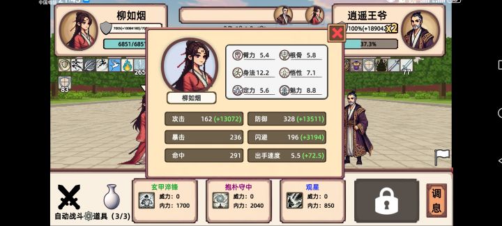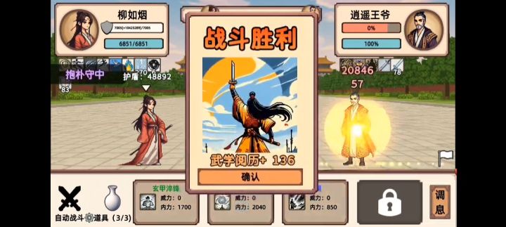 #新手攻略 道具选择百宝袋(增加道具伤害) 打完木头人选择增加内力和血量的天赋学习,学完以后会送一个防御技能,这个也是关键后面扛BOSS伤害用 偶遇事件优先选择防御,命中,血量 每年的体力用来学武功,优先学品质高的,传功阁遇到加修炼多给经验的一定要拿,然后自由天赋点 升级选择天赋优先级如下 境界升级天赋>鬼怪手(增加暗器伤害)>血量>防御>命中>出手>加根骨加悟性加身法>随机策略 按
