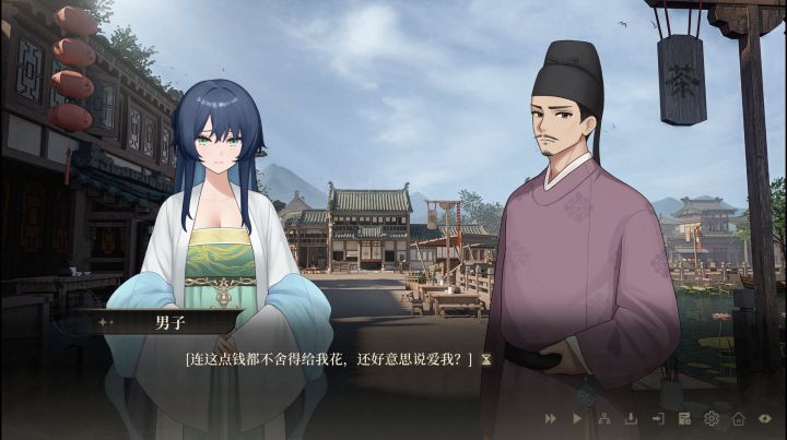 音画上面倒是让想起了曾经玩过的黑暗桃花源,也是一个反套路和中式黑暗故事题材的一个游戏。2D的画作相当的精致,还有角色身上的服饰,会根据什么职业、什么性别这些细节都会有所不同,细节满满。配音方面则是国产视觉小说的平均水平,而且游戏的文本也没有什么太多绕口、生僻词汇,就是现代人的口语习惯,这点好评。几个不同的角色各有特色,甚至出场的路人也有相当不错的配音,仅凭音色也能区分出这些角色。