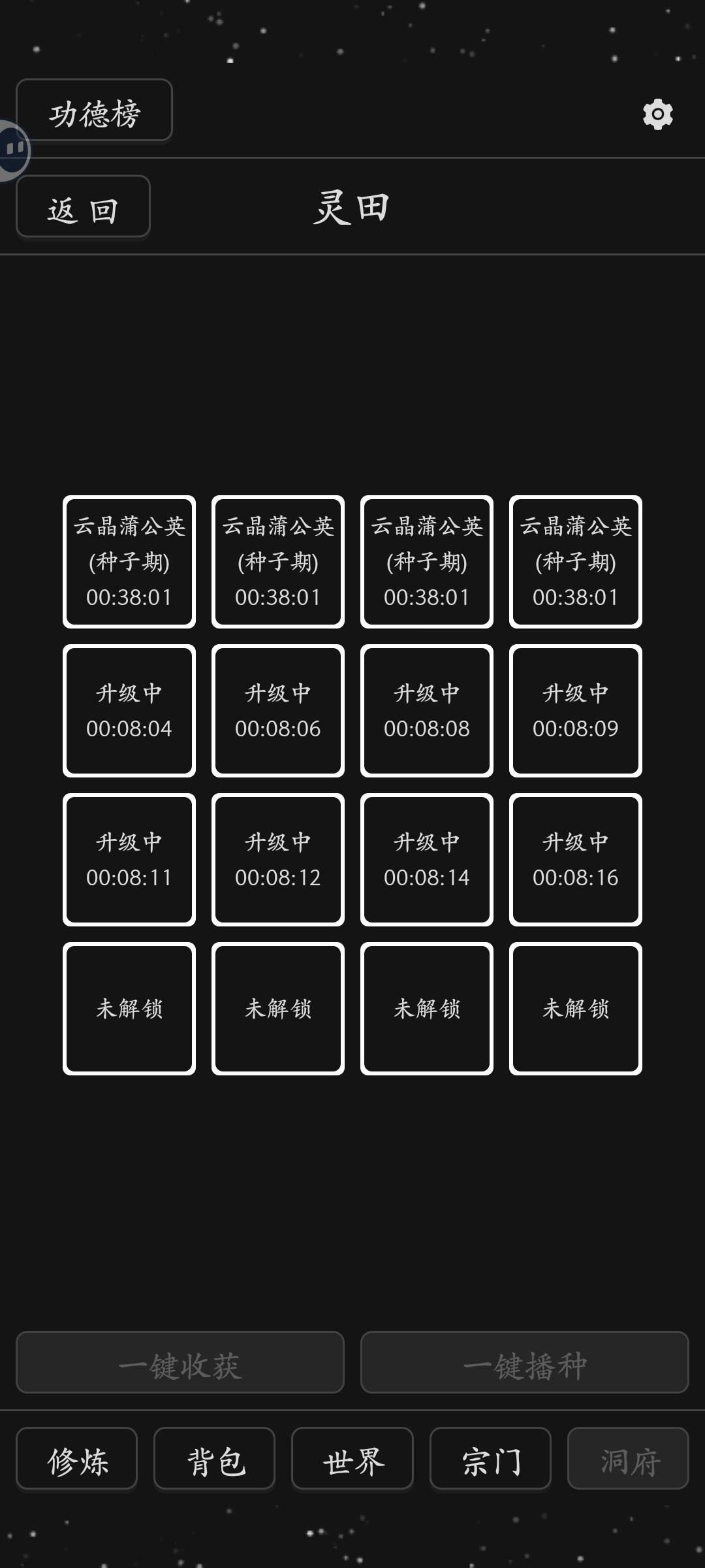 上一次更新把钱全倒进去修炼了,今天一上来看到灵田懵逼了,手里就9w块了