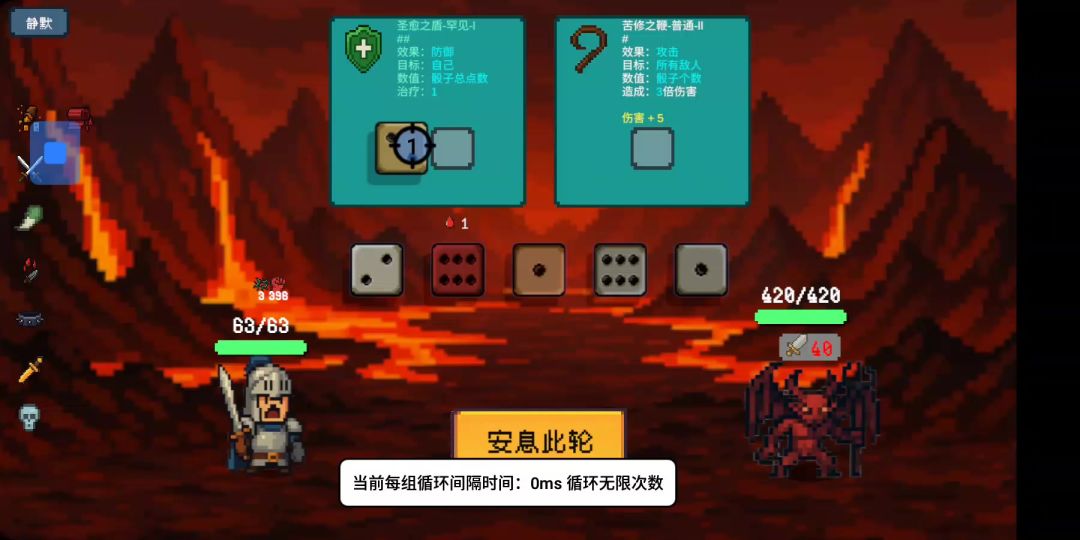 通过锻圣散记,多叠重掷次数 找到合适的骰子,确保每次投掷都能触发bug 我是用的一颗全6的萌动, 每次摇到6,就给敌人加护甲 再通过烈主之鞭效果,三次bug全场减100血 虽然其他套路能打出几千伤害 不过对目前关卡来说那都远远溢出了 所以减100这也是很可观的 就可以随随便便摇骰子 把BOSS摇死 注意点重掷不要连点,就像我第一回合那样,骰子在停止之前,是吃不到bug的