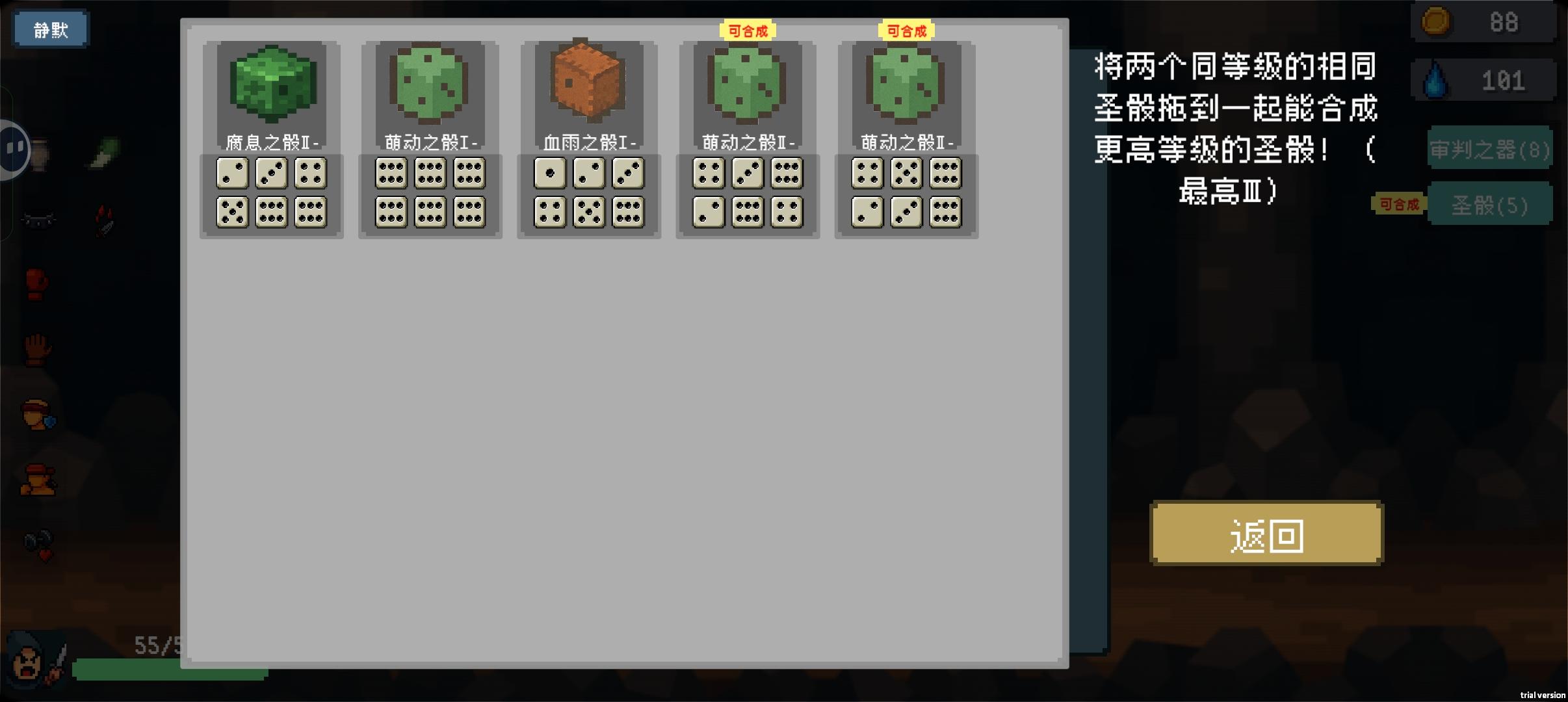 通过锻圣散记,多叠重掷次数 找到合适的骰子,确保每次投掷都能触发bug 我是用的一颗全6的萌动, 每次摇到6,就给敌人加护甲 再通过烈主之鞭效果,三次bug全场减100血 虽然其他套路能打出几千伤害 不过对目前关卡来说那都远远溢出了 所以减100这也是很可观的 就可以随随便便摇骰子 把BOSS摇死 注意点重掷不要连点,就像我第一回合那样,骰子在停止之前,是吃不到bug的