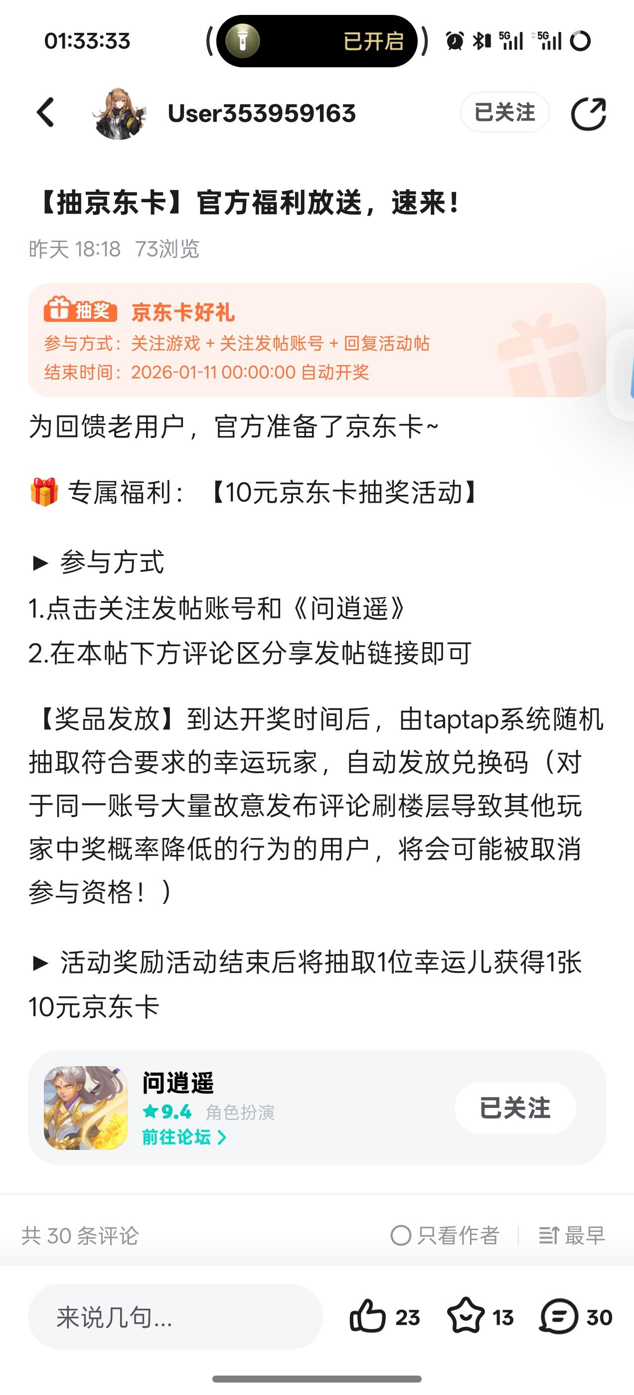《问逍遥》福利活动|轻松关注,赢10元京东卡!
