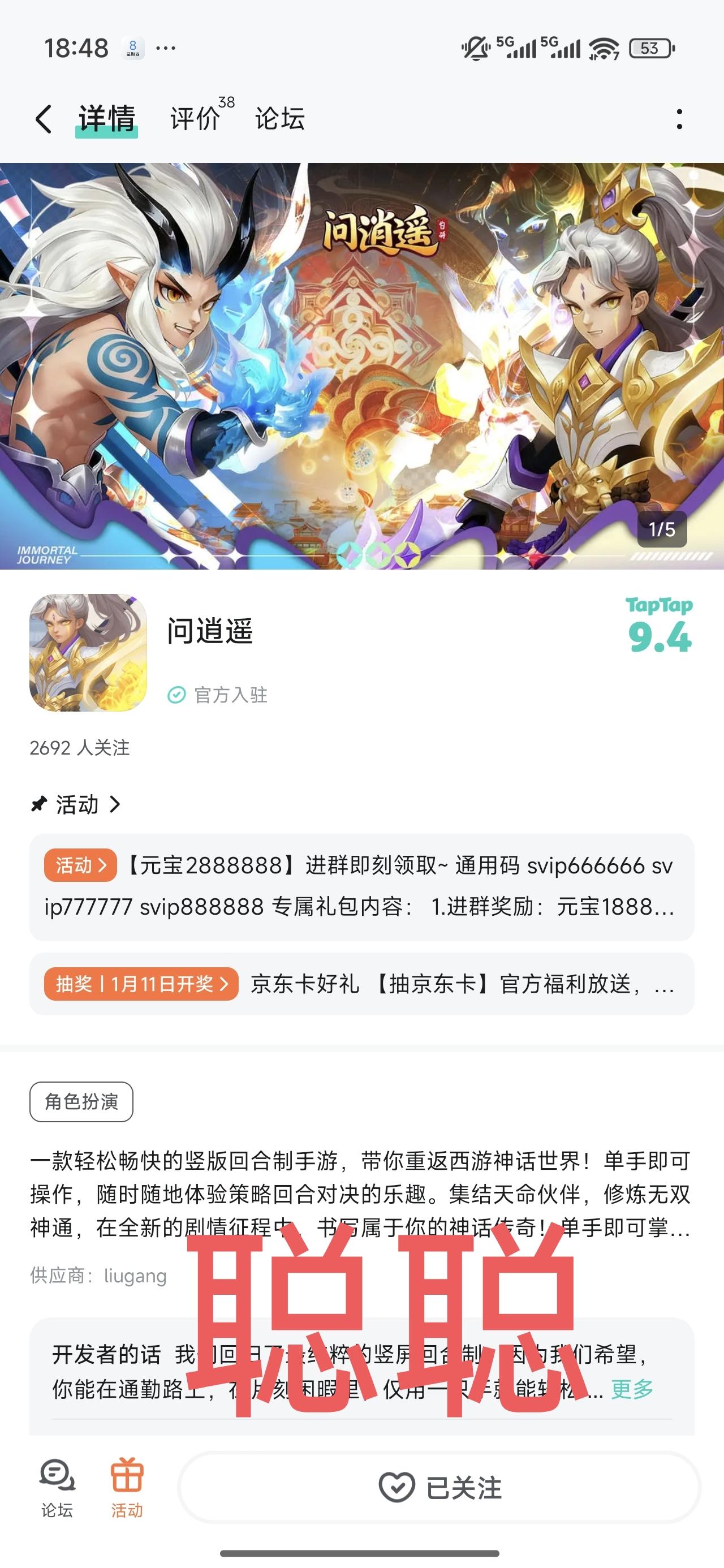 竖版回合制手游《问逍遥》邀你重返西游神话世界!单手操作无压力,通勤摸鱼、工作间隙随时开玩,集结天命伙伴、修炼无双神通,全新剧情里书写你的专属传奇~ 三界风云已起,现在入坑还能抱走京东卡福利,速来参与!🎁 活动奖励抽取 1 位幸运仙友,送出 10 元京东卡 1 张(兑换码自动发放,到手就能用~)📝 参与方式点击关注发帖账号 关注游戏在本帖评论区留言,即成功参与⚠️ 活动规则开奖后由 T