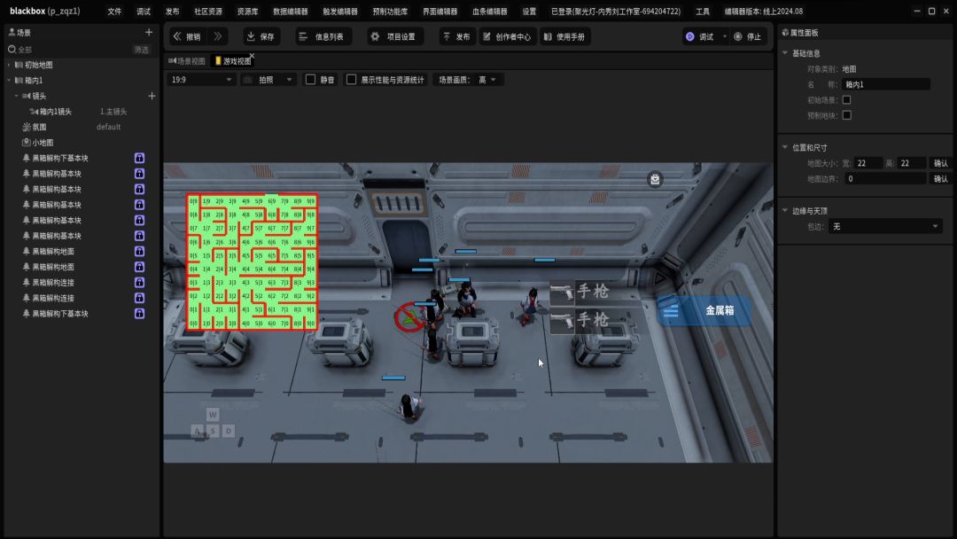 解密类需要一点神秘元素,再加点恐怖感觉比较合适。另外幽暗的灯光和幽闭的空间应该能很好的增加代入感。经过可行性认证,发现星火编辑器内自带的地图拼接功能,更加时候大世界类型或者过关类的拼接。在思考的时候加入了一点背景设定,再带入游戏方案的修改,有个新的思路。灵感来自于《超灵异杀人矩阵》,这个设定对于拼接迷宫是极好的。密闭的空间,完全相同的单个房间,对场景设计也是很友好的。所以,我决定使用单块连续相