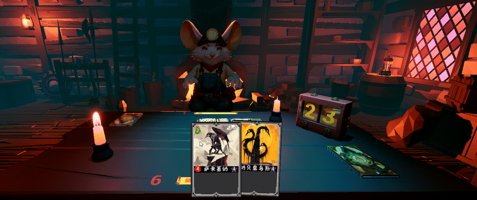 经过一段时间的狂肝进度,我们终于把游戏的初版场景搭出来了!(图1)是的,如你所见,因为团队里的美术都对3D更熟悉,因此最终我们的游戏也选择了3D。预想的牌局发生在一个地狱酒馆里,布景带有一定的复古风格。理想状态下,我们希望这个场景给玩家一种“超现实”的氛围,有一种似真还假、雾里看花的感觉,这和游戏的故事背景(发生在死后世界)也更加契合!所以在后续的迭代中,我们还会继续尝试在图中的基础上再尝试加一