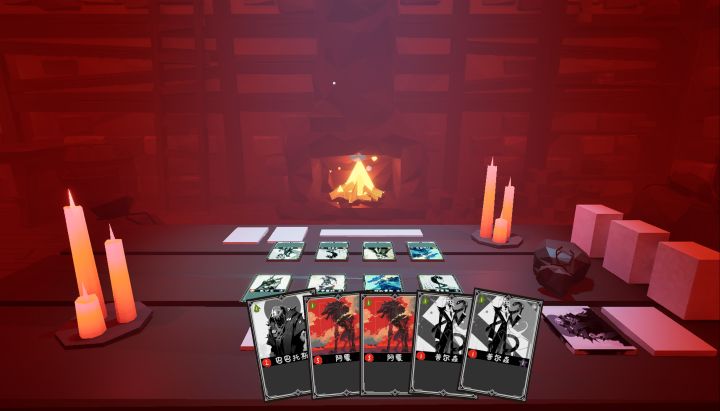 经过一段时间的狂肝进度,我们终于把游戏的初版场景搭出来了!(图1)是的,如你所见,因为团队里的美术都对3D更熟悉,因此最终我们的游戏也选择了3D。预想的牌局发生在一个地狱酒馆里,布景带有一定的复古风格。理想状态下,我们希望这个场景给玩家一种“超现实”的氛围,有一种似真还假、雾里看花的感觉,这和游戏的故事背景(发生在死后世界)也更加契合!所以在后续的迭代中,我们还会继续尝试在图中的基础上再尝试加一