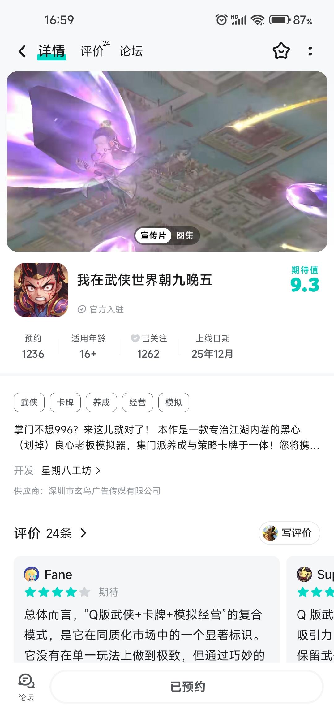 大家好啊,这里是星期八工坊。 然后,全体目光向我看齐, 武侠世界的良心老板模拟器——《我在武侠世界朝九晚五》正式开启预约咯~~~ 什么什么,你的意思是在这个血雨腥风的江湖,竟有一个门派可以让打工人们不休不眠的卖力干活,这可太黑心,哦不,应该说良心企业了!当然身为掌门的你,同样也是要日理万机运筹帷幄(摸鱼玩游戏),你们的一切努力都是为了让门派发扬光大,因此从结果来说实在是可喜可贺可喜可贺。