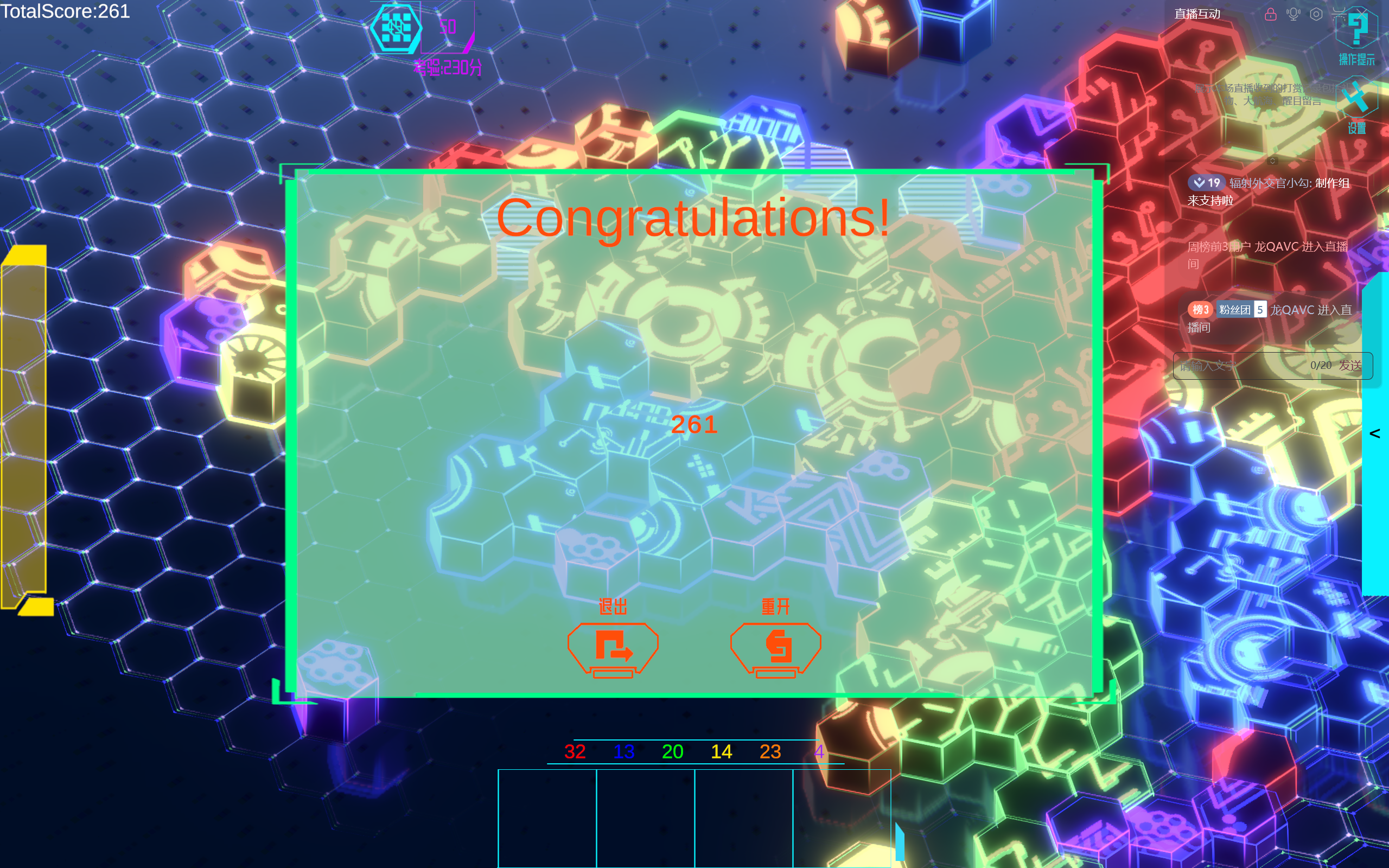 机制设计很有意思!是一个需要一些策略规划的地块放置游戏,乍一看规则文本好像很多,实际上玩一下就能马上明白了。地图上随机出现地块的机制增加了一些挑战性,但是给的道具又提供了容错空间,玩进去了感觉还挺上头的。美术风格很科幻,暗色背景发光地块特别有科技感,很喜欢这样的风格。不过感觉音乐节奏可以舒缓一些,现在的bgm略感急促(?)玩的时候甚至瞥了一眼是不是还有倒计时UI。总体来说很好玩也很值得反复体验!