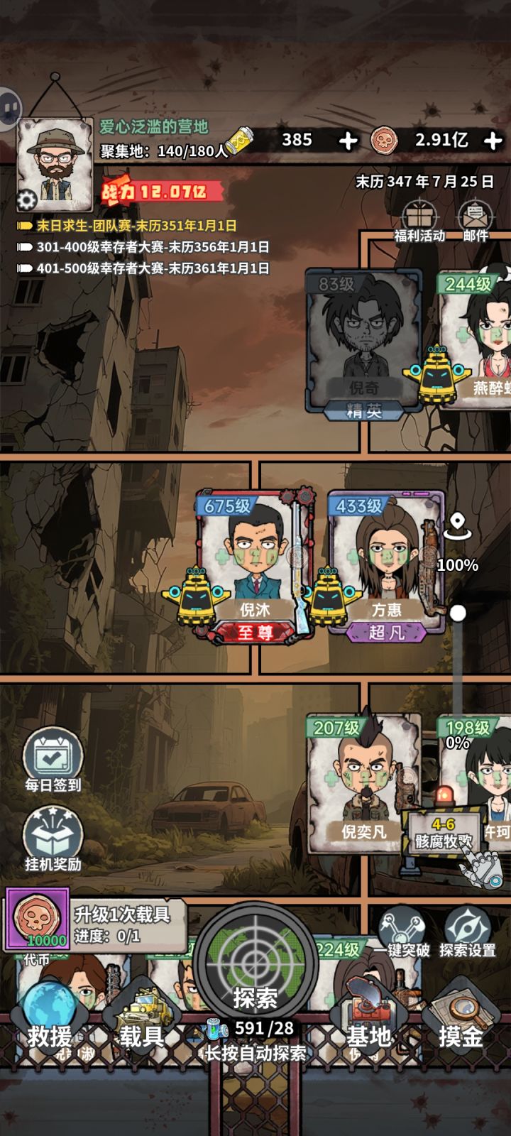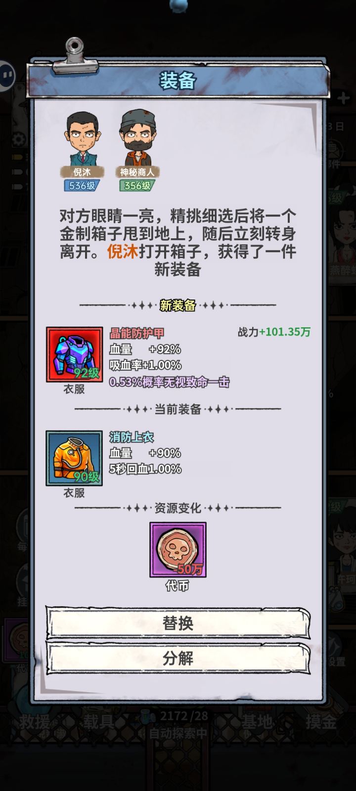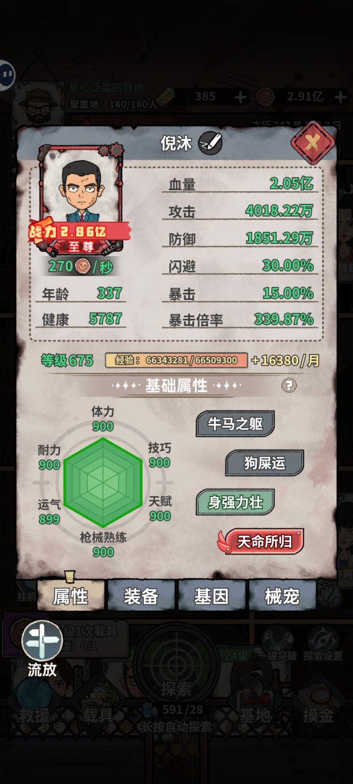 1钱币 前期确实缺钱,导致人物的突破没法全选超载,解决方法也简单,拉满人口挂机一晚上2装备,基本两种方法获取,如图,想要更好的装备只能花最高档的钱或者看视频,白嫖很少给好货,装备貌似是递进式的成长,就是你得有了低级装备,才会给你更高级的3人物,前期词条决定属性,属性有点用,后期属性靠基因解锁,基地培养属性,寿命不够的话也可以从基地加健康值4载具,这个最坑,要的多拿的少图片里的那个应该是挂哥?