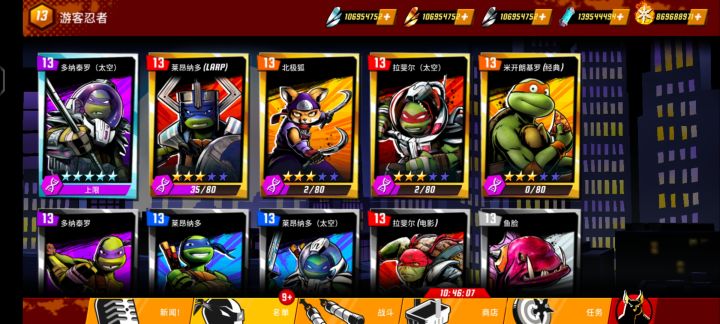 你们白屏,闪退,登录不了,讲道理都是没装谷歌,emmmmmmmmm这游戏国内好像现在没人玩了,也对,都跑去看漫威了,谁还看忍者神龟,欸,刚刚才在谷歌商店找到这个游戏,没想到居然没人玩,我还以为是新游戏,当成单机可还行,单机也没法玩,体力消耗太快了,很多东西就这样慢慢就消逝了,你也不知道什么时候你就开始忘记了,当你偶然翻到童年的本子上的那只乌龟,你才想到,这不是那个忍者神龟吗,感叹一番,就继续前行了