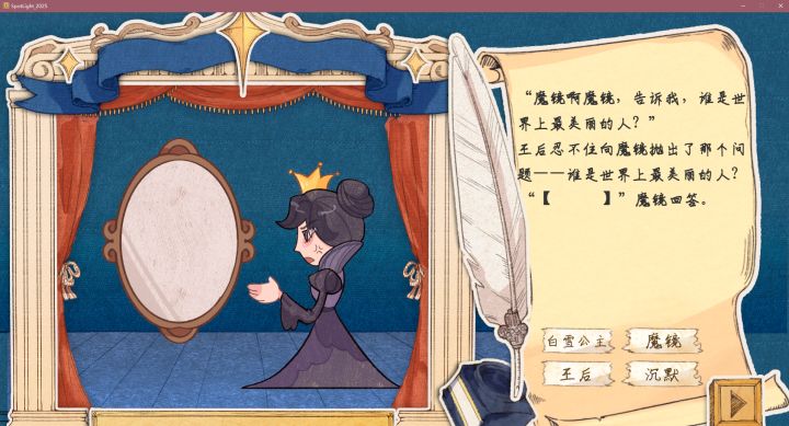 在童话故事中,总会有一些看似浪漫但是不太符合常理的东西,所以这款游戏从童话故事出发,寻找故事中的逻辑bug,也算是对应本次大赛的主题。