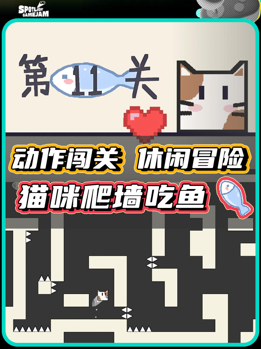 这是款平台跳跃游戏,玩家扮演一只小猫,去吃一条鱼。游戏中猫咪可以借助机制卡进墙里,在两个空间里闯关,游戏整体不难,大概二十分钟就能初次通关,还是挺休闲的,游玩也比较流畅,能感受到作者的一些奇思妙想,感兴趣的朋友可以去试试。#TapTap聚光灯独立游戏 #休闲游戏 #单机游戏 #游戏日常 #游戏攻略 #聚光灯gamejam全民试玩