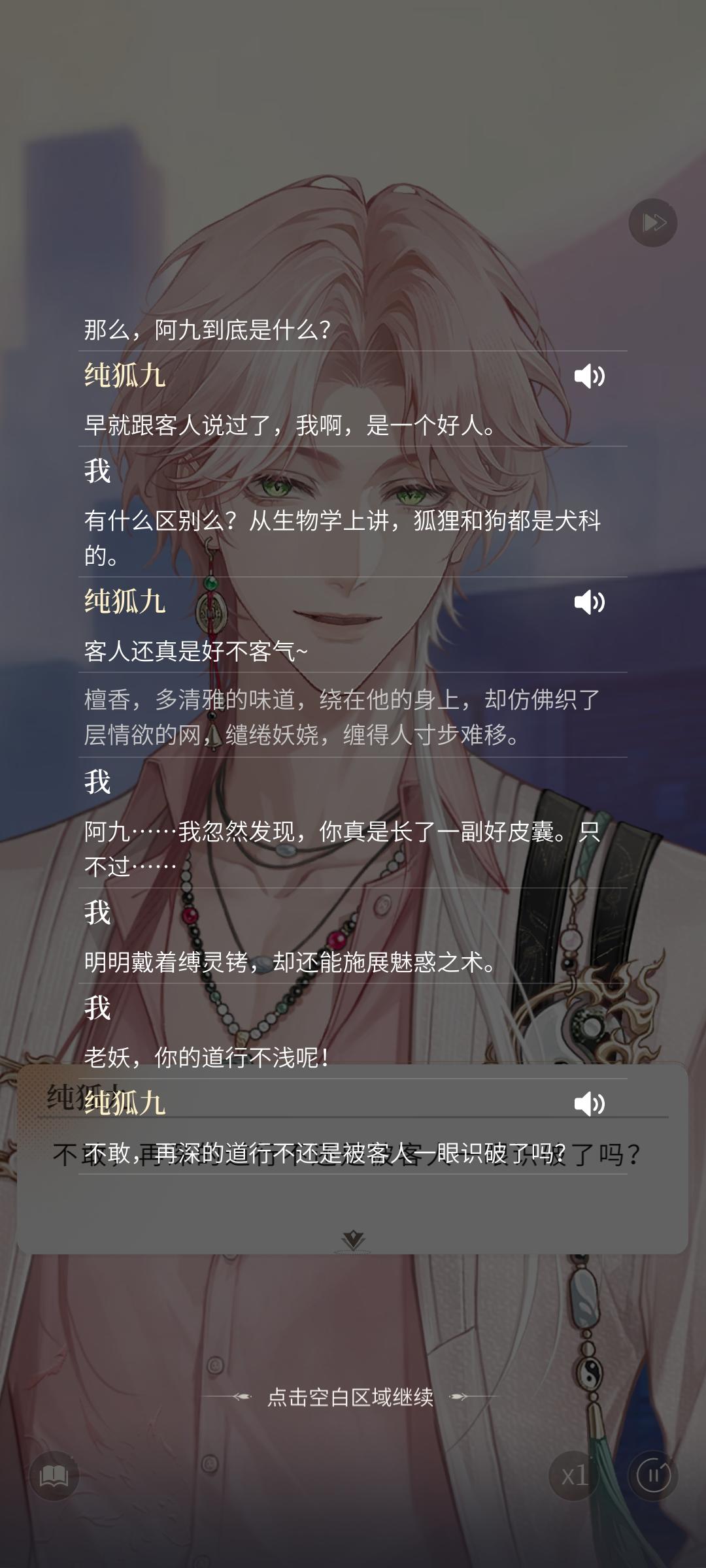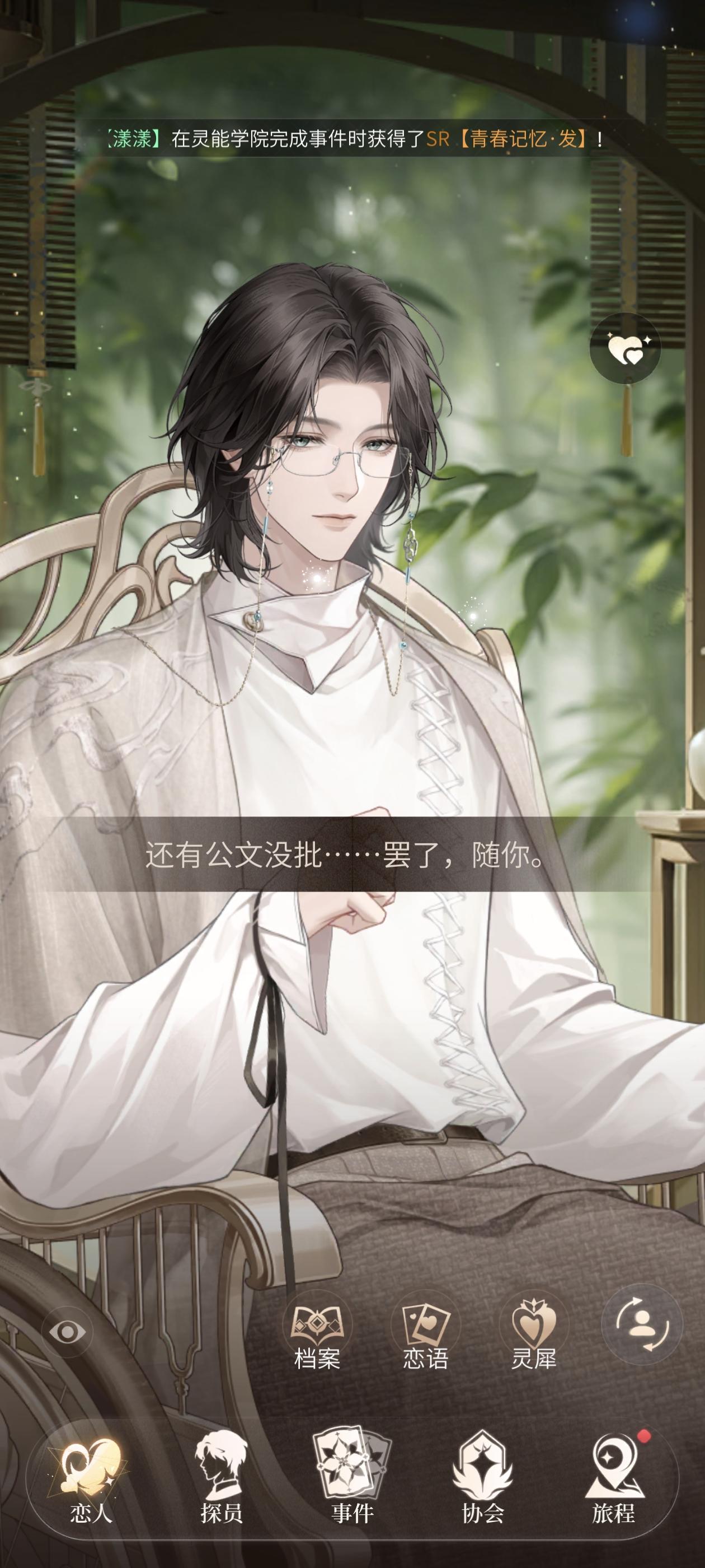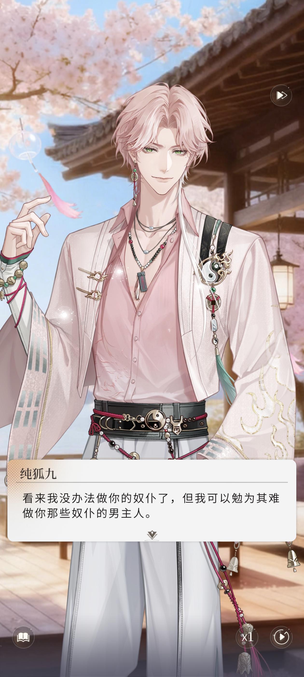 只截了剧情,还挺幽默的。主控因为被捡回来,一直和妈妈走对抗路母女的养成路线,所以是比较大大咧咧,身上带“挂”的设定。三位男主,一位是沉睡千年、在现代醒来的高冷妖怪,一位是魅惑人心、在现代当主播且会算命的狐狸,一位是表面上是上司、实则喜欢主控的温柔第一术士。至于玩法,是按时间恢复体力,用体力解决事件,从而拿到经验升级的流程。在解决事件中,会触发各种奖励,比如金币、钻石、衣服、升级材料或男主约会