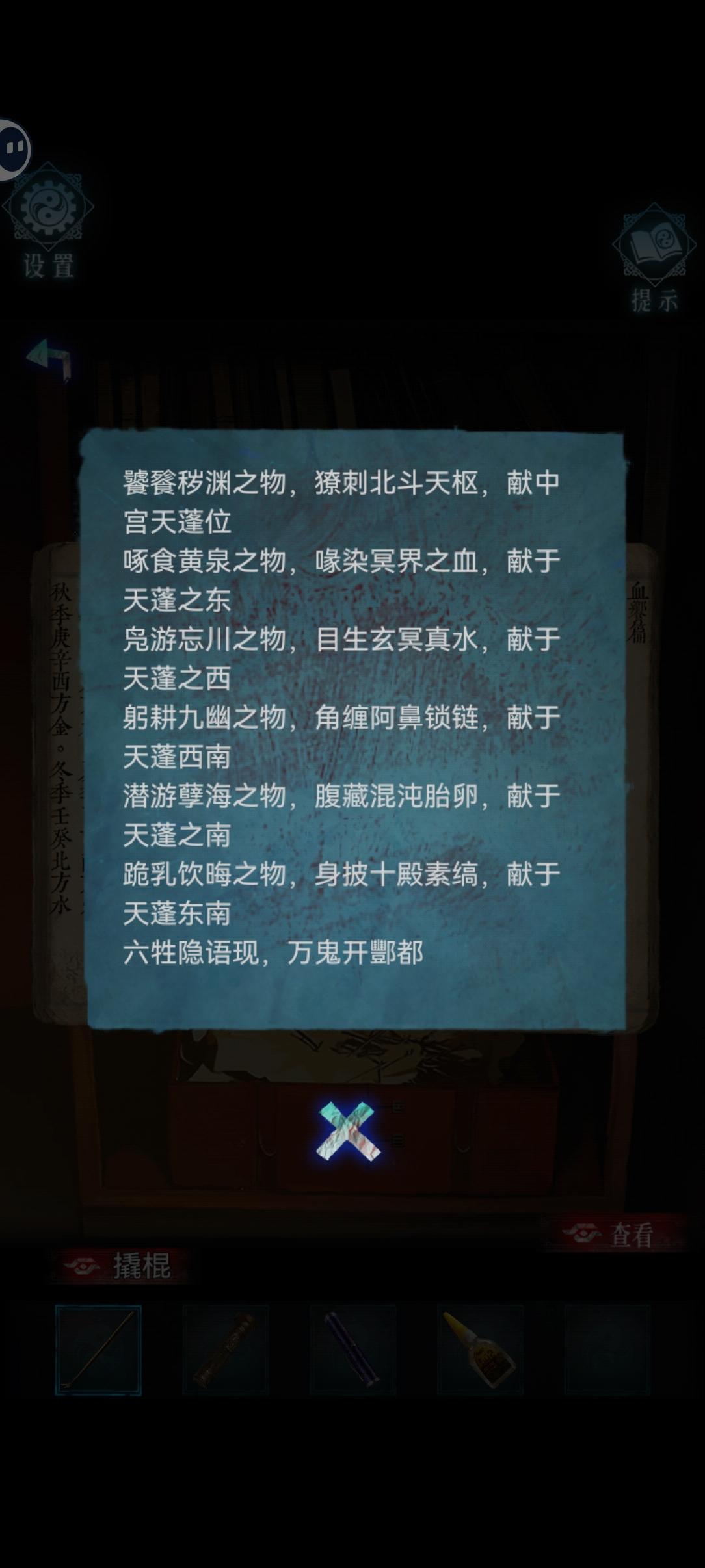 1.679解开旁边箱子的密码2.拆迁时间3.简单的数独4.电三轮旁边有本用紫灯照5.用香点画开祠堂6.恭喜顺时针,发财逆时针7.紫灯照狮子眼球8.收音机去旁边窗户拿手电筒照41239.真的难转得照每个圈的中心才能转