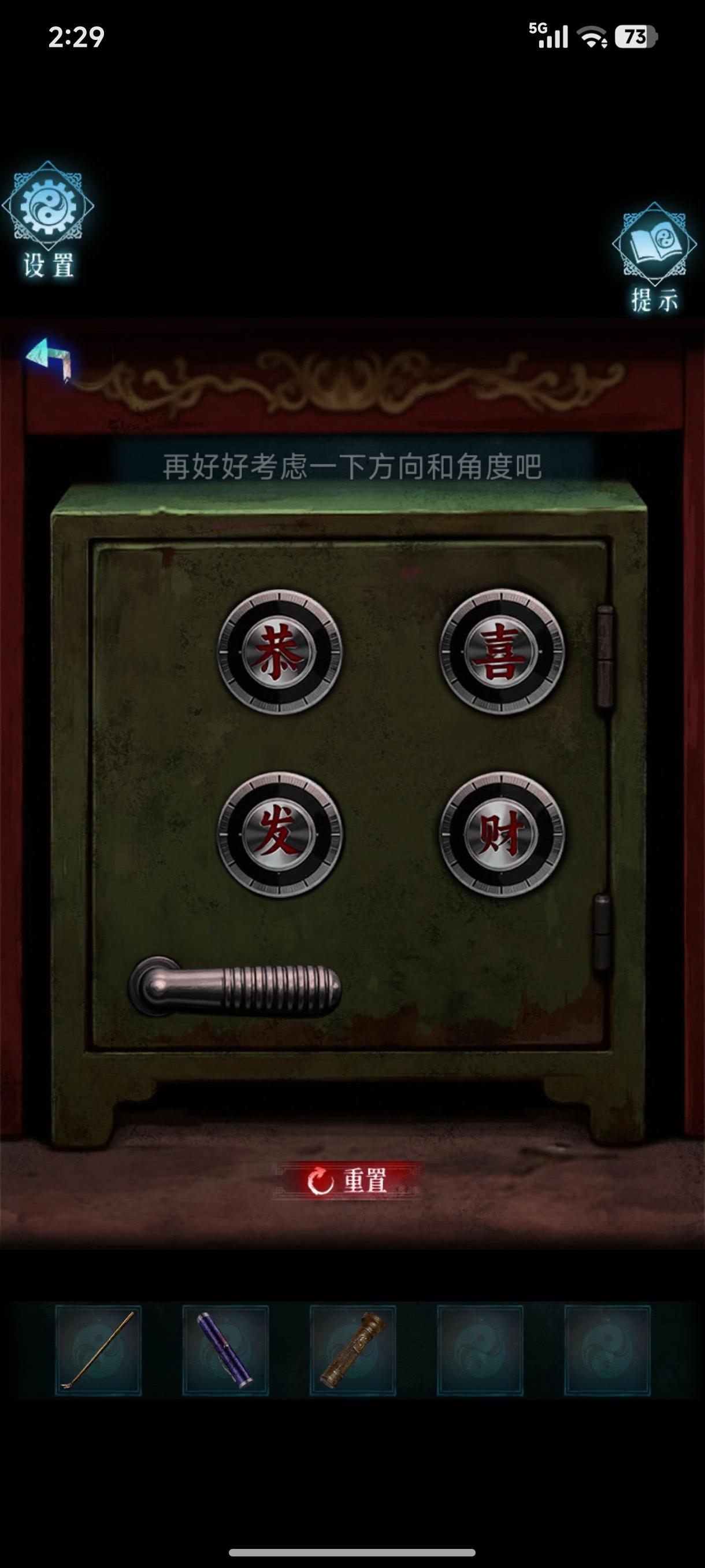 1.679解开旁边箱子的密码2.拆迁时间3.简单的数独4.电三轮旁边有本用紫灯照5.用香点画开祠堂6.恭喜顺时针,发财逆时针7.紫灯照狮子眼球8.收音机去旁边窗户拿手电筒照41239.真的难转得照每个圈的中心才能转