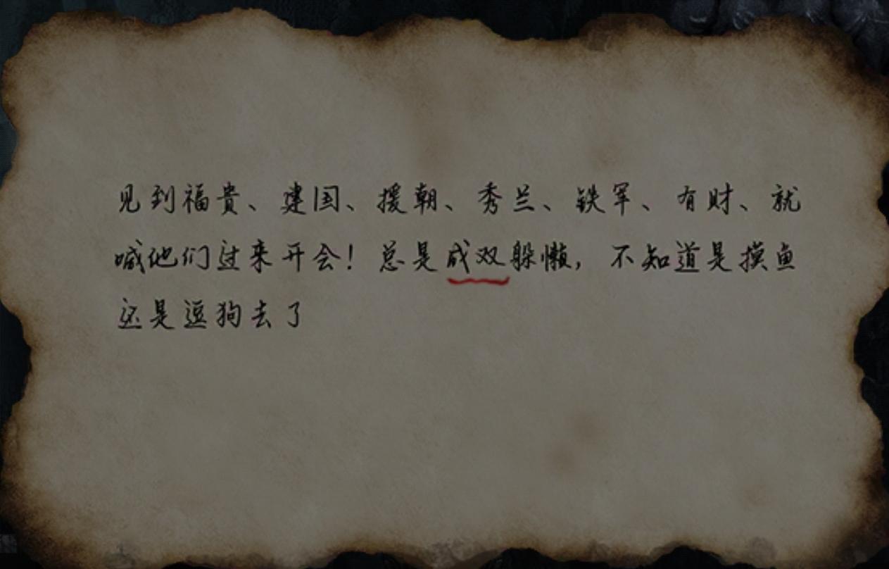 1.679解开旁边箱子的密码2.拆迁时间3.简单的数独4.电三轮旁边有本用紫灯照5.用香点画开祠堂6.恭喜顺时针,发财逆时针7.紫灯照狮子眼球8.收音机去旁边窗户拿手电筒照41239.真的难转得照每个圈的中心才能转