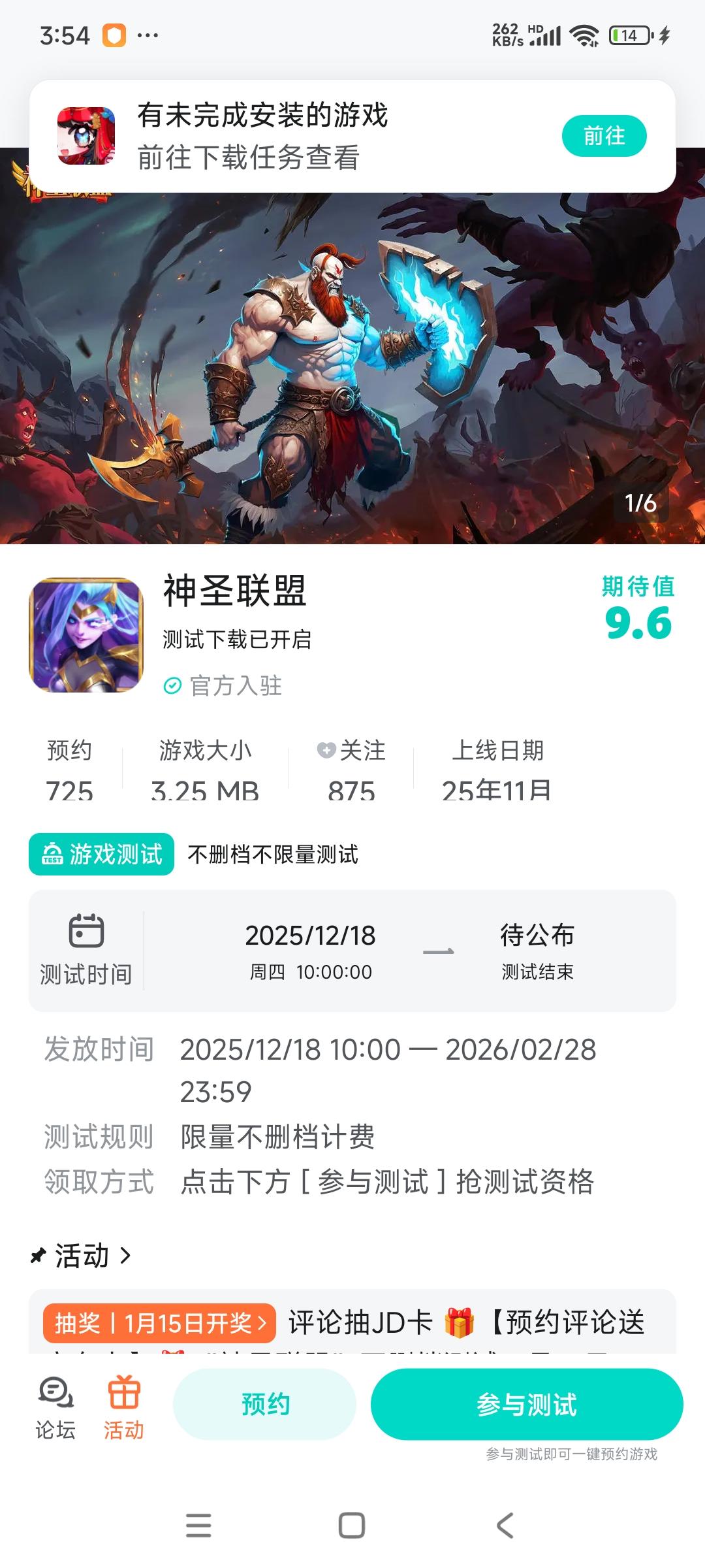 亲爱的玩家们: 让大家久等啦~~ 《神圣联盟》将于2025年12月18日10:00开启测试,此次测试为不删档计费服,欢迎大家前来测试服体验,为此我们特地给大家准备了惊喜哦!活动一、开服新手礼包::msvip666、msvip888活动二、进群福利礼包:基础召唤券*10、高级召唤券*10在本帖下方评论区回复【已加群】,联系客服QQ:3879945355领取礼包码活动三、惊喜福利:当本活动参与人