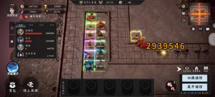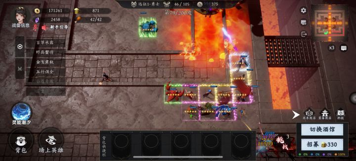 绿色英雄篇:牛头马面是前期输出担当,两者组成的羁绊大幅提升对普通怪的伤害。虾兵蟹将是目前版本的主流控制英雄,螃蟹放在合适的位置配合虾兵可以控制相当长的时间沙僧玉面狐狸以及哮天犬,目前除了凑羁绊意外并没有太大作用。新英雄的风伯雨师也有不错的输出能力。蓝色英雄篇:牛魔单体输出不俗,紫霞群体控制,八戒地脉羁绊也附带一定控制效果但阵容不太契合,铁扇嫦娥以及四大天王都是各有千秋的棋子,新英雄雷公电母组合伤