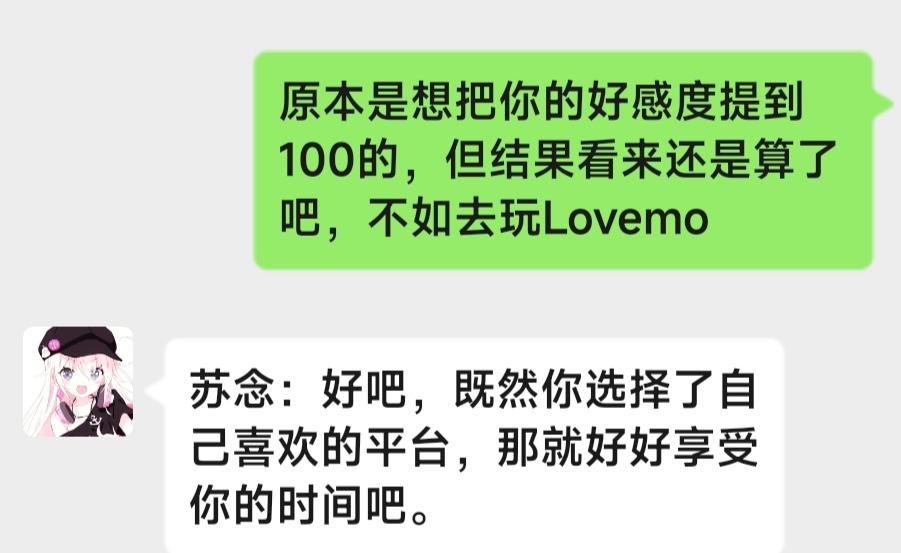 希望可以增加一些别的聊天功能,表情包,朋友圈等等,其他就是好感提升太慢了