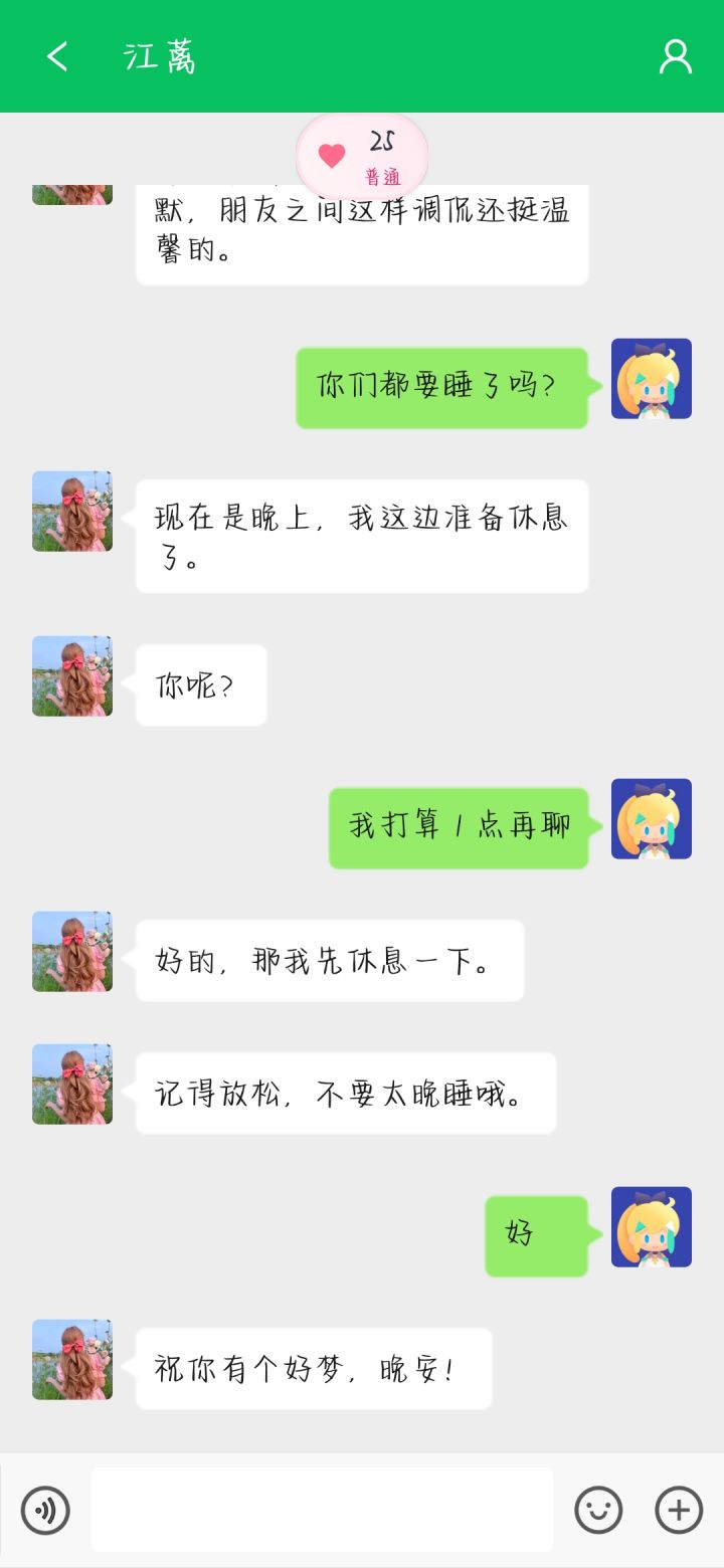 我还找到了一个刷好感特别快的方法 我先找的陆川试的 你一直给他发表情 他就会回礼嘛,然后一来一回的就会一直刷刷刷刷刷好感