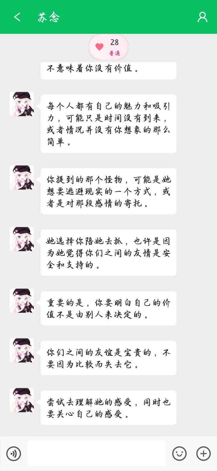 我个人感觉吧…聊天上,会重复聊同一个话题,反复提及,好像就没有其他话可以聊了🥀也没有朋友圈可以视奸,感觉还有待进步。现在这个情况,我个人感觉还是差点的🙏🏻🌟怕图没了,发个帖记一下,虽然这几张没啥用#单机游戏 #游戏日常 #发现好游戏 #网恋模拟器