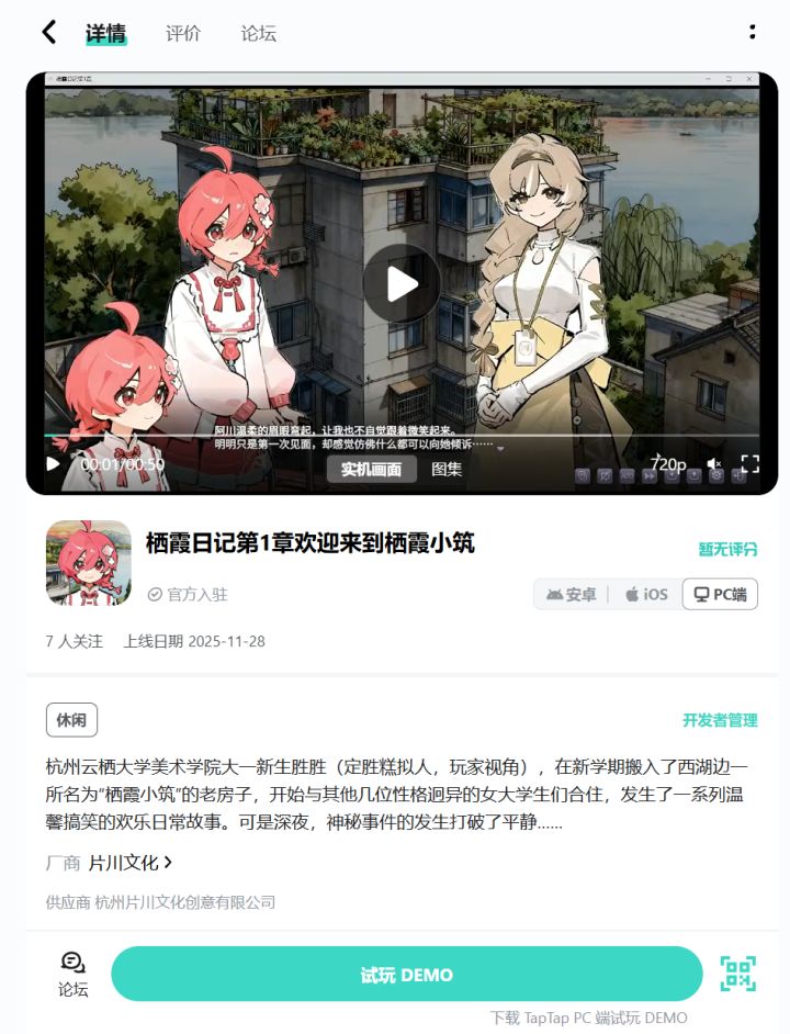 欢迎体验及反馈!近期第2章也会发布Demo版,敬请期待!#原创 #发现好游戏 #杭州美食拟人 #栖霞日记 #游戏日常 #独立游戏