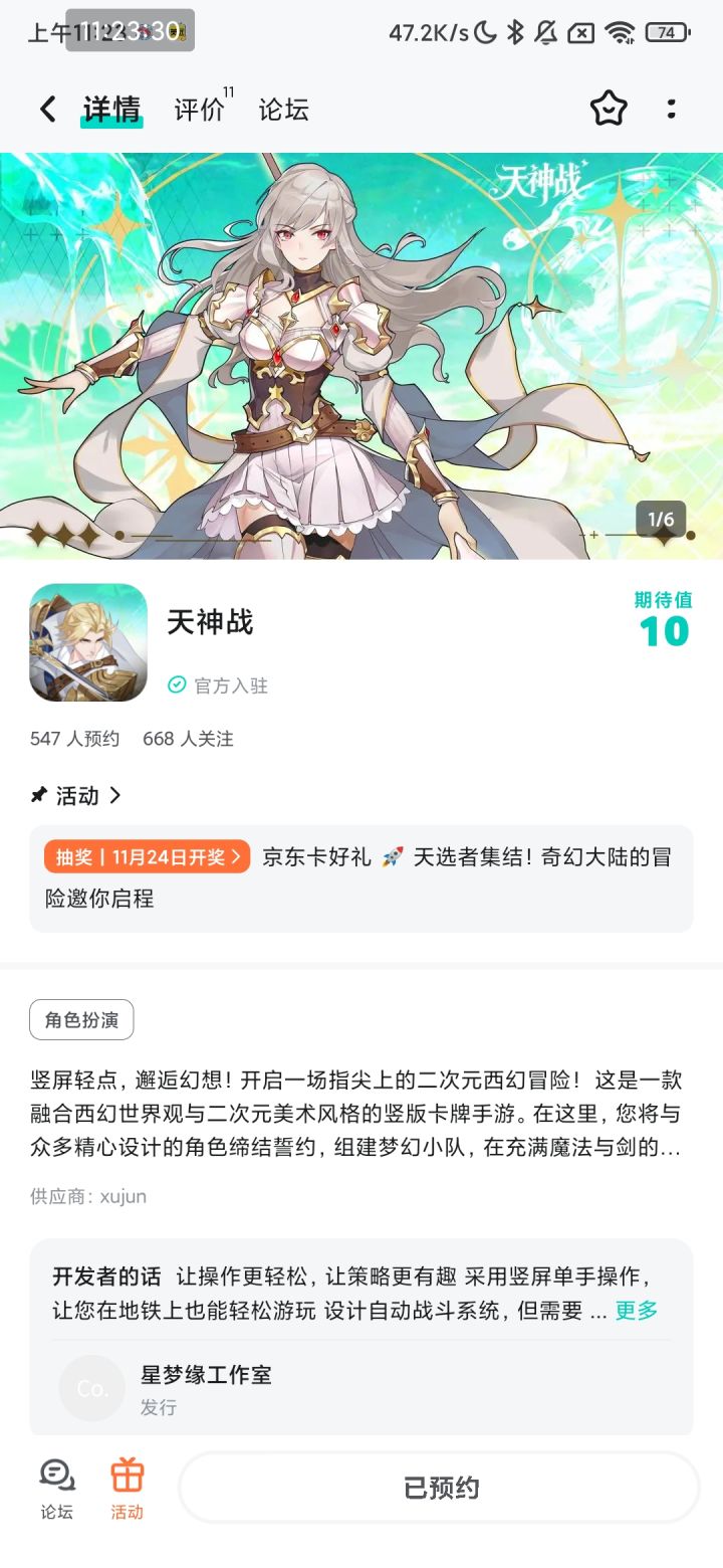 “竖屏轻点,邂逅幻想!” 当西幻世界的魔法与剑,遇上二次元的灵动美术,这款全新竖版卡牌手游终于迎来预约开启时刻!作为被「誓约之书」选中的天选者,你即将踏入一个满是惊喜与挑战的奇幻大陆,开启专属于你的指尖冒险!🎁 预约福利来袭!京东卡轻松赢【京东卡抽奖活动】▶ 参与方式1.点击关注《天神战》并发新帖晒截图2.在本帖下方评论区分享发帖链接即可【奖品发放】到达开奖时间后,由taptap系统