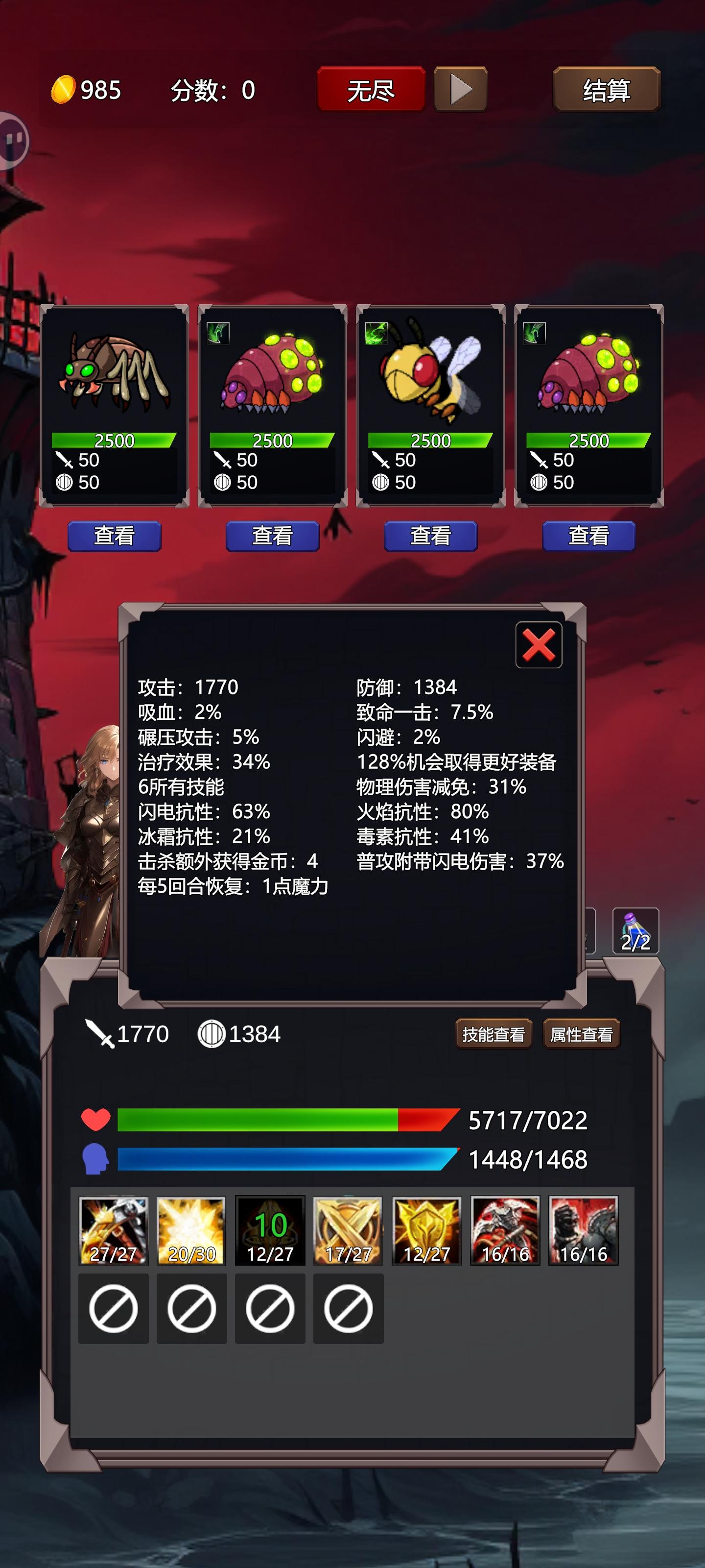 领了码把钻石全点防御,因为防御超过敌人攻击也最少还要受10%伤害,所以局内买一个生命回复抵消战损,随从设置后排自己当前排等他等级起来再考虑换回来,刷一个生命回流溢出回血转回蓝猛猛挨揍,多余技能空格堆毒或者流血,最好专玩毒,抗到BOSS,然后就是叠叠叠看数值了。第五关才有8攻戒指,带孔装备全镶嵌防御石头,第六关小怪已经逆天到90多攻随从根本扛不住,装备提升也很小。建议开局刷个魔力回复,不贵,4000