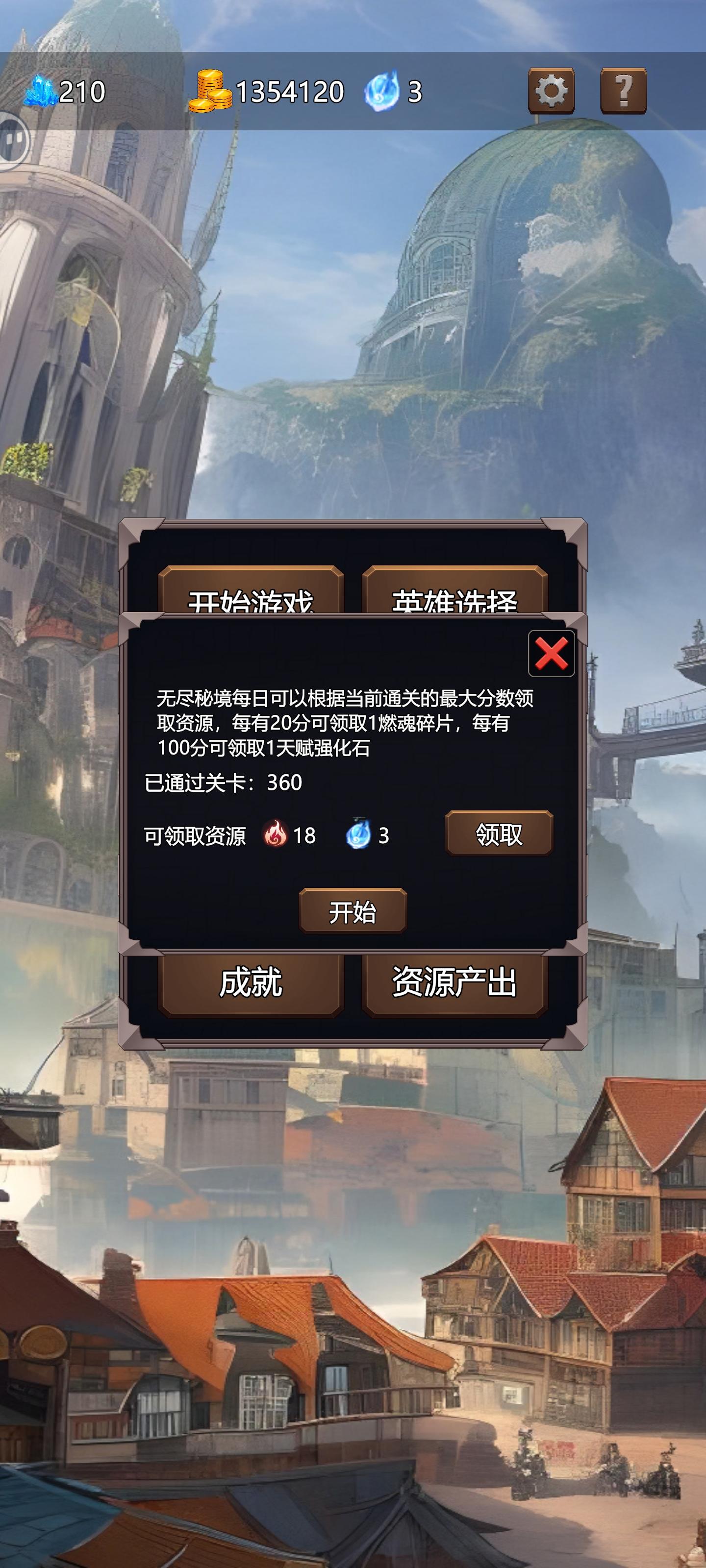 过困难15之前,先在简单15刷个武器,再在困难6刷个衣服,符文做任务把地下城5个图刷一遍就给1-5号符文一套,天赋带两个被动基本能挂机好多图,冲层带回蓝和毒后面是真的缺蓝,公共天赋优先点满这4个,困难15过了优先买霜龙强化,需要准备2500钻石,我把钻石花完了需要7天才能买。感觉刷的挺上瘾就是没有指引坑比较多,每个英雄升一级会给一个强化石,每天商店+广告会给10个,强化石只点天赋不点强化,天赋的强