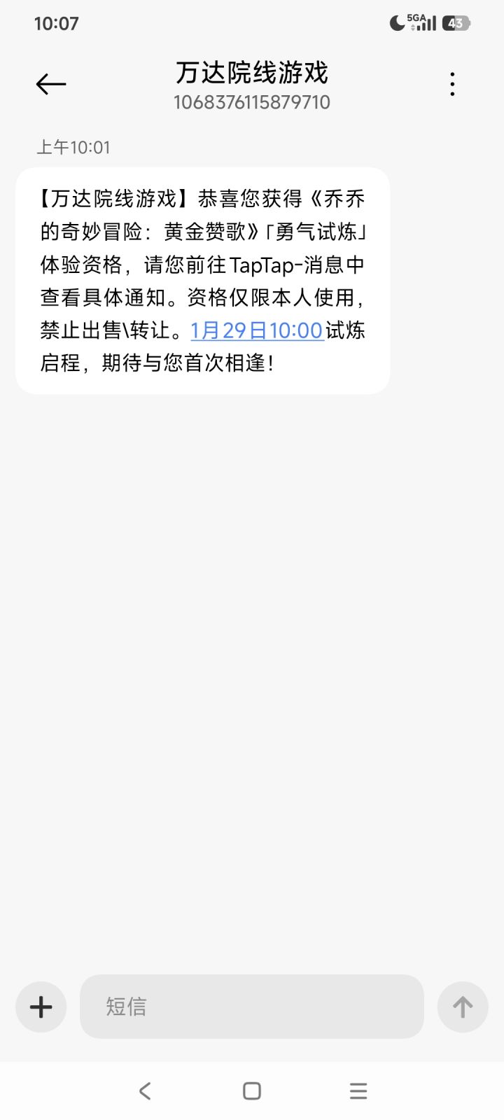 各位伙伴们,《乔乔的奇妙冒险:黄金赞歌》「勇气试炼」测试资格将于2026年1月27日(周二)通过平台站内信发放,您可以在此查看具体通知。>>测试信息<<测试时间:2026年1月29日10:00开启测试类型:小规模不计费删档测试测试平台:仅限安卓端 本次测试资格仅限获取资格的伙伴本人使用,禁止任何形式的转让/共享/售卖/租借,上述行为一经查实将会被取消测试资格。 本次「勇气试炼」测试内容