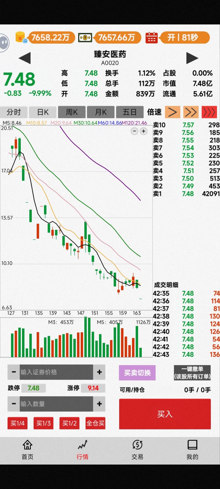 2.8开拉,跟ai打配合用现实的ab波浪走势拉到5块撤了以为按前面的抛压会回撤已经把所有均线都慢慢踩上去了结果ai在情绪崩盘的情况下一口气拉到8块慢慢磨到10块,我在8块重新进场接抛压根本就没有抛压,ai拉到11我砸盘然后就是回撤一个支撑就反弹冲11,11块的时候我才4千万已经控不了盘了,后面120均线以为会和前面一样反弹一个跌停接1万6块梭哈接了2万ai没拉只能以这个价位拉涨停重新调