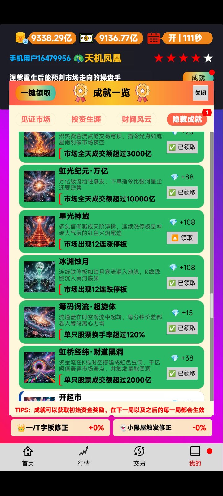 每次达成成就,清空资金概率50%。只要不完成成就,被清理的几率应该会很低。至少大盘,没到2888前,窝还是安全。也无所谓了。作者摆烂,凑合着玩。这游戏更新频率,还有bug,很难赚到什么钱。另外想赚钱,建议作者去看一下另外一款游戏。末日我有一辆房车。人家游戏没你的好,但是人家听劝,更新频率很快。该改的地方,当天就改了。更新啥,全让玩家投票决定。评论群热闹的很。建议作者可以去学