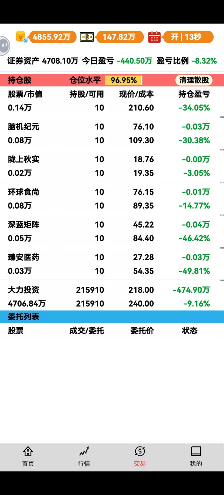 龟速追涨大法。稳定收益。不看ai操作,不管牛熊,每天几百万进账。可惜,跑不过ai收益。
