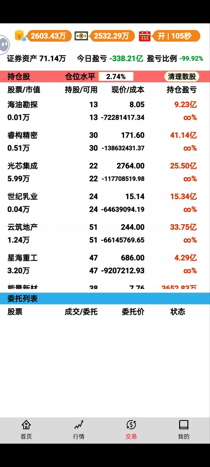 每次达成成就,清空资金概率50%。只要不完成成就,被清理的几率应该会很低。至少大盘,没到2888前,窝还是安全。也无所谓了。作者摆烂,凑合着玩。这游戏更新频率,还有bug,很难赚到什么钱。另外想赚钱,建议作者去看一下另外一款游戏。末日我有一辆房车。人家游戏没你的好,但是人家听劝,更新频率很快。该改的地方,当天就改了。更新啥,全让玩家投票决定。评论群热闹的很。建议作者可以去学