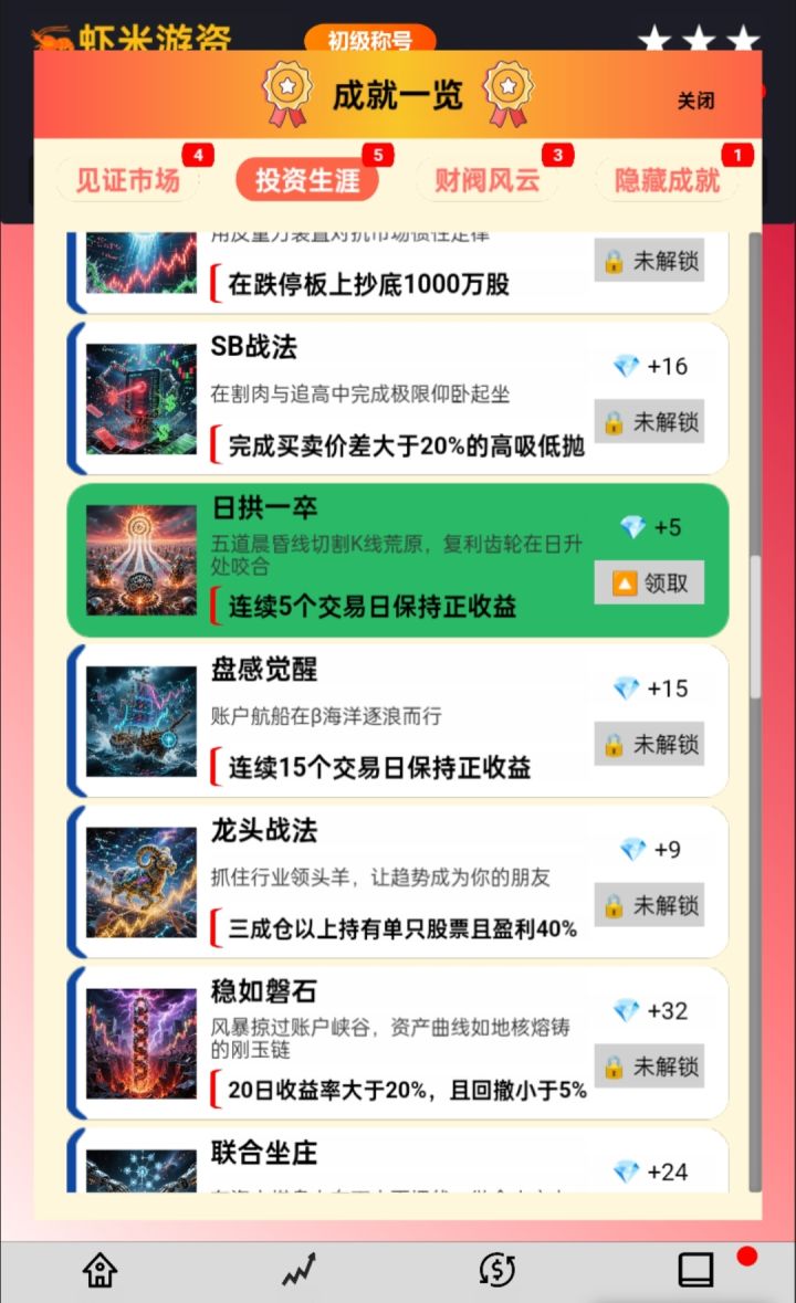 解锁成就多多,我也成为虾米游资啦