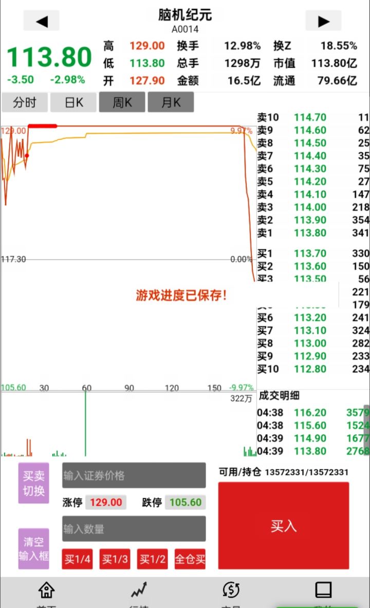 #股票模拟 股票操盘手游戏,恶庄啊,不过看这个量,估计还是有不少货在手里的吧。