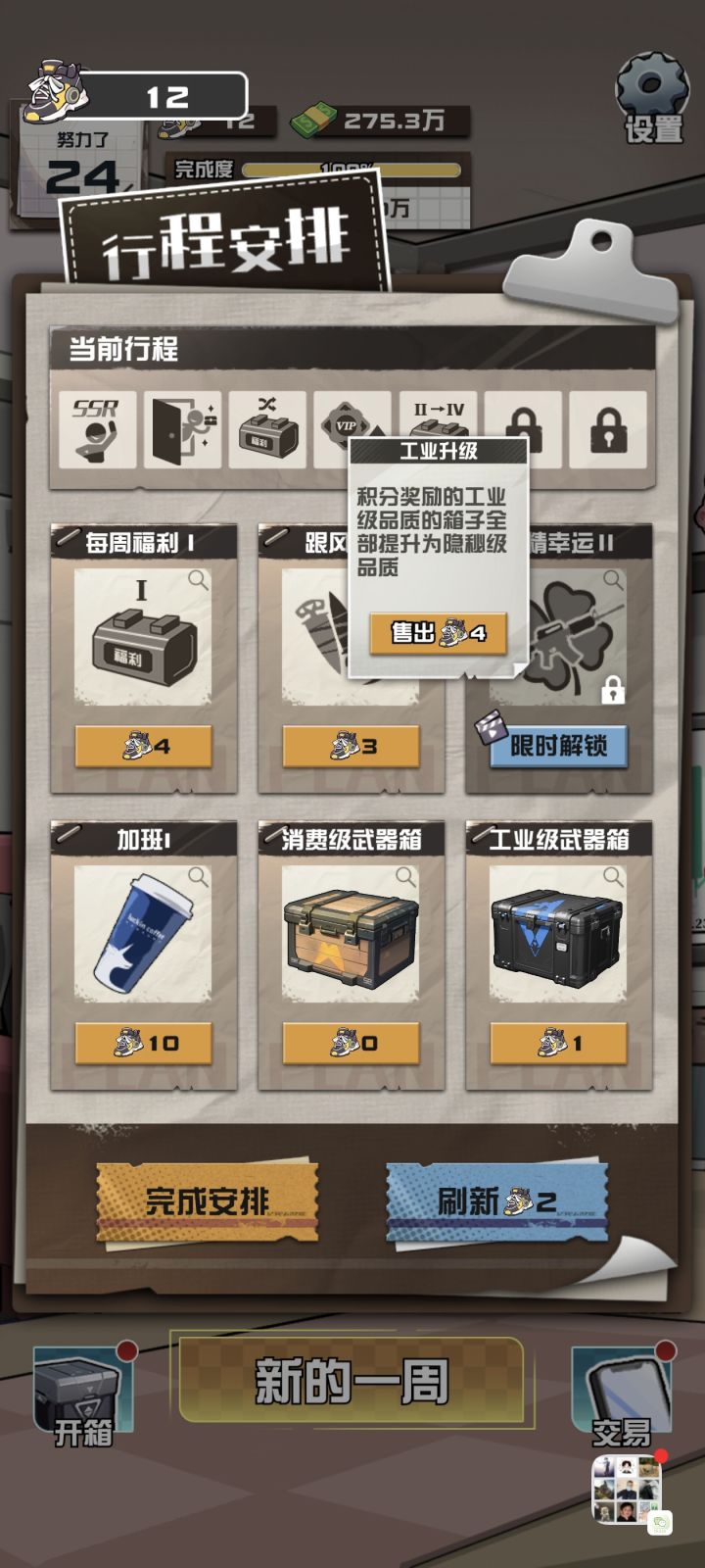 积分宝箱是400积分一个轮回,一个轮回可以拿8个宝箱,工业升级可以把蓝色宝箱升到红色宝箱,一轮回就可以拿到6红2紫,再拿一个额外积分天赋,就能实现开8个宝箱获得408积分,成功实现电表倒转,想开多少开多少