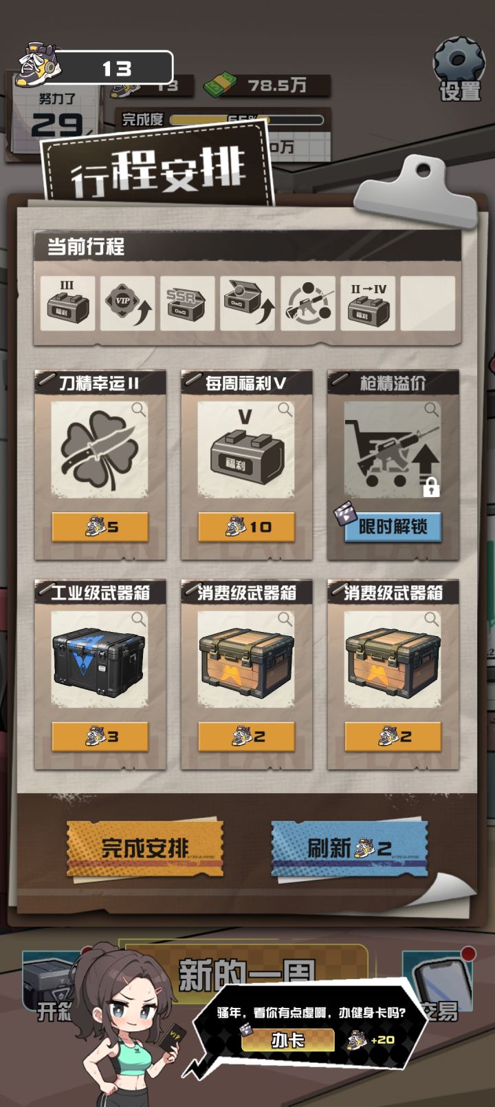 出个一键领取箱子吧,一个领取太累了,一万多积分,后面用都用不完,只管开箱子,开了就去买,有个天赋是卖掉商品得箱子的,箱子越来越多,实在开不动了,10万以下的都直接出售