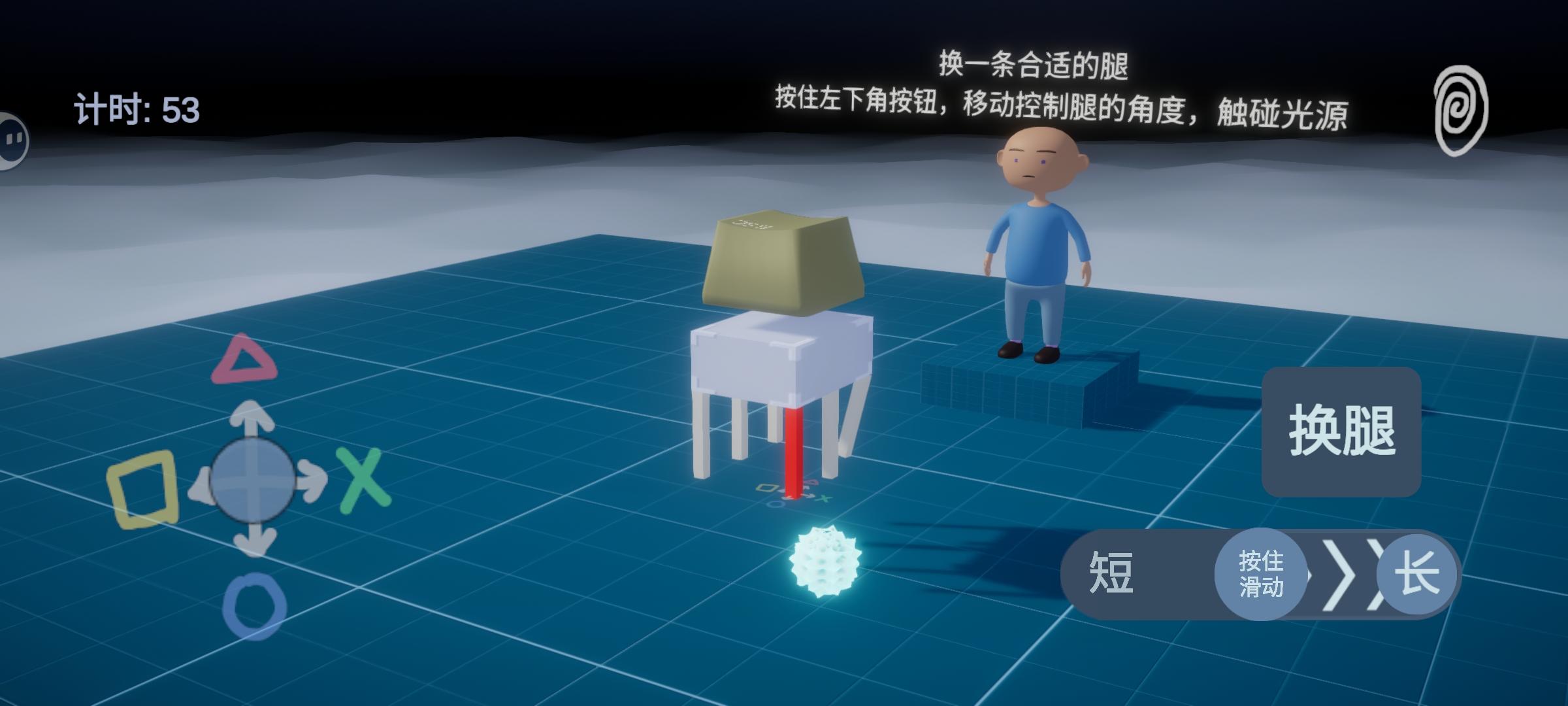 控制六条腿凳子前进的故事,每次只能调整一条腿,可以在一定程度上变长,或者通过左侧摇杆来改变方向。功能相对简单,操作不算太复杂,但要做到精准控制整体可是太难了,会经常翻车。