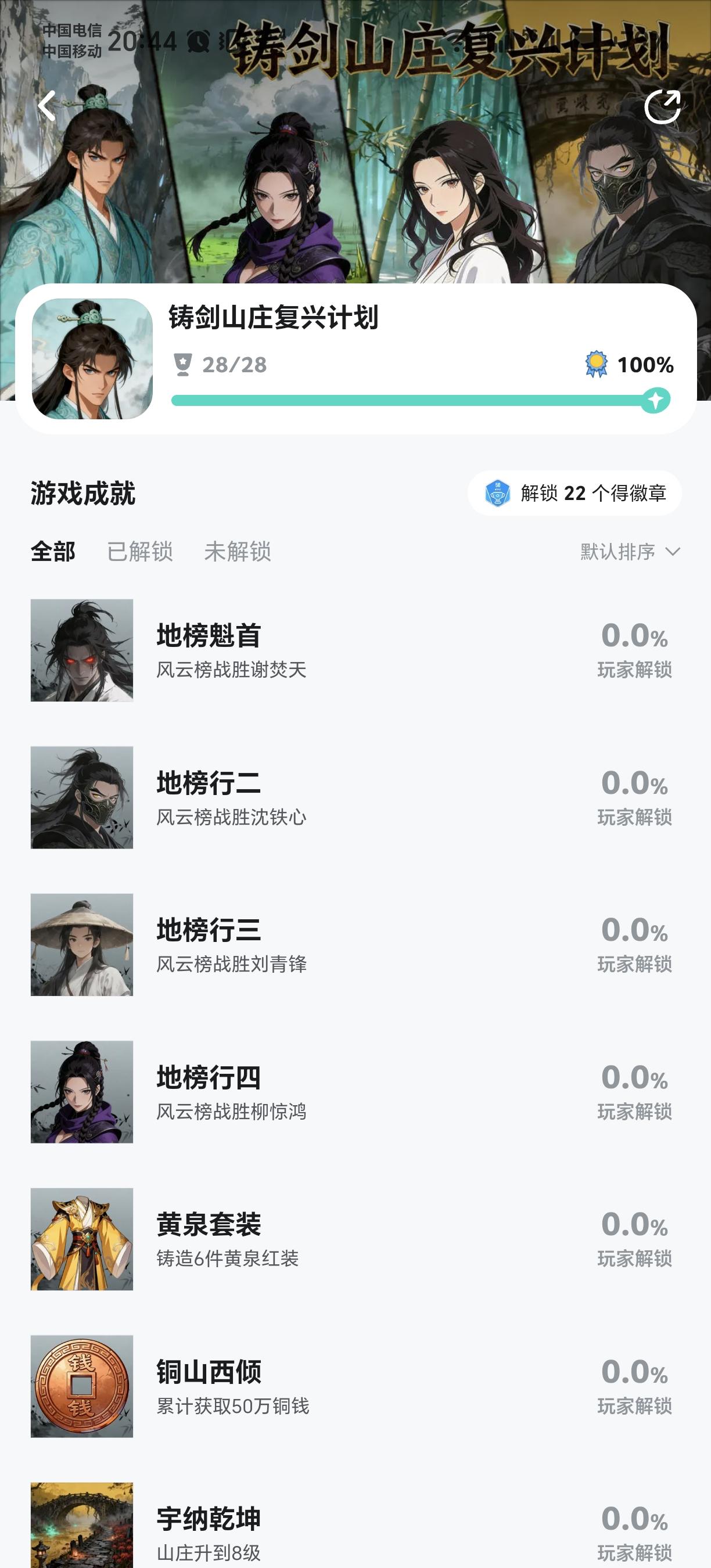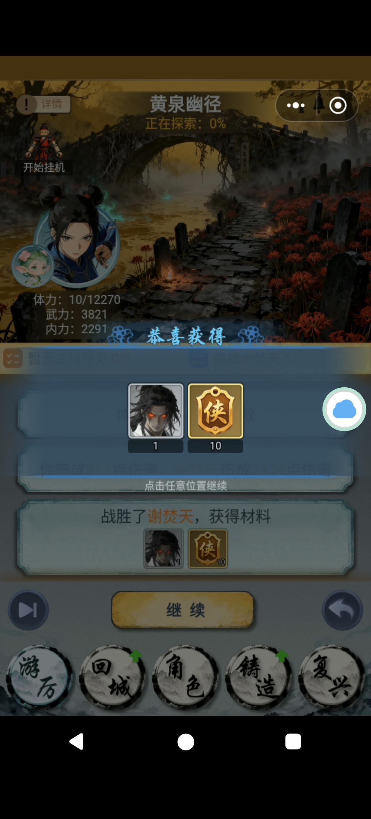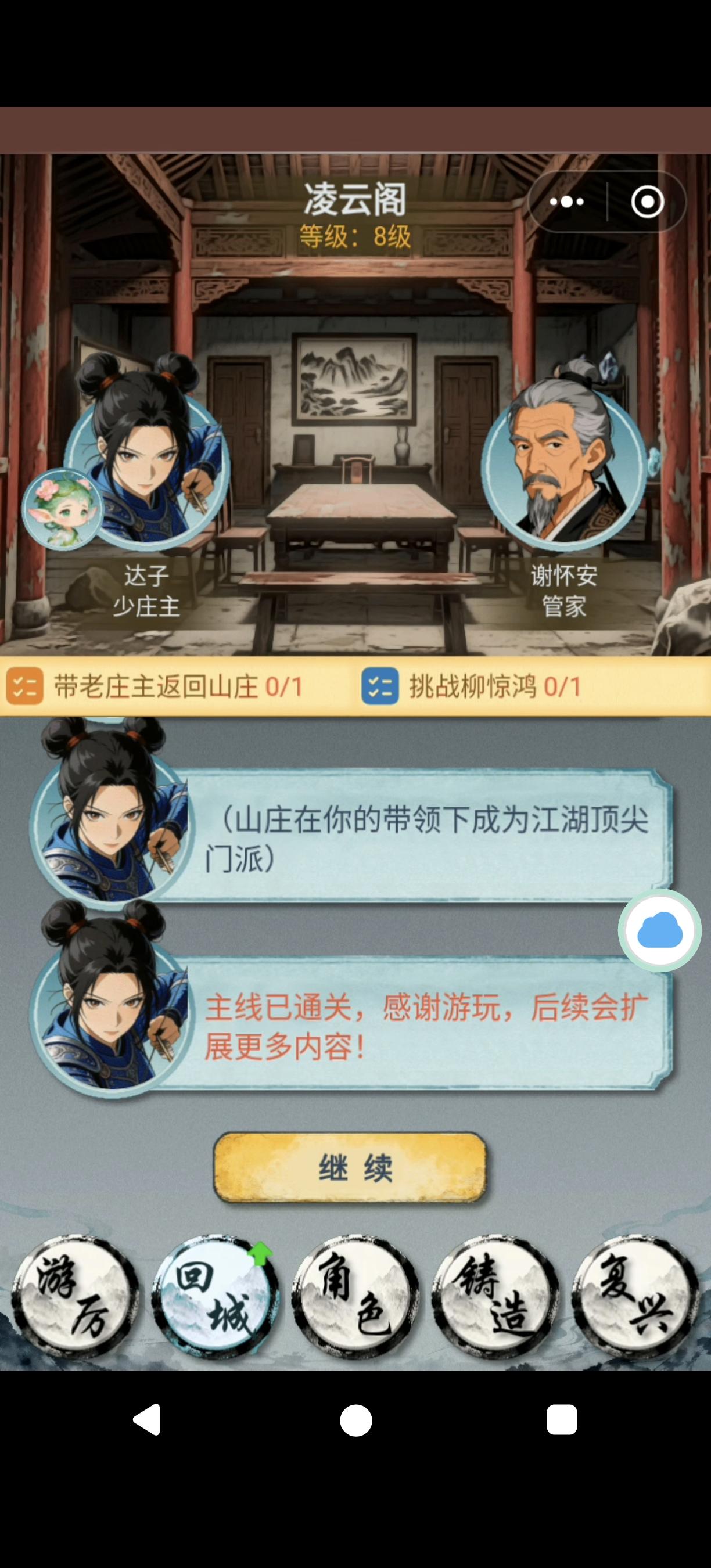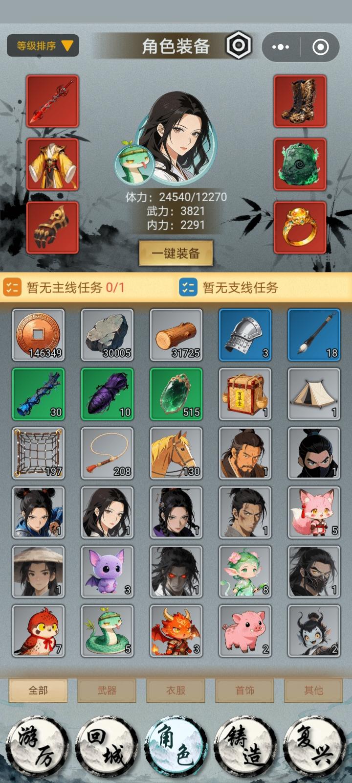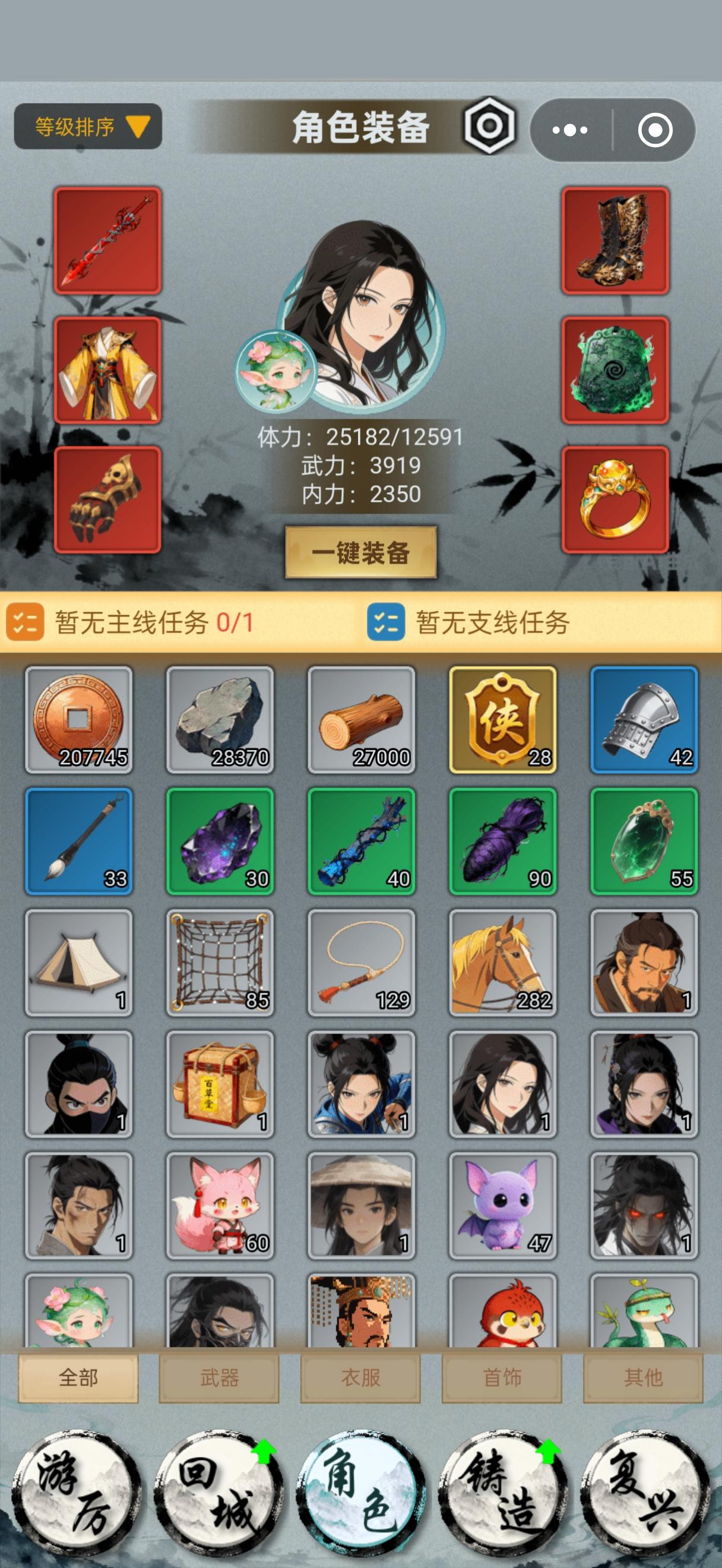 各位少庄主好,经历了长达两个月的开发,《铸剑山庄复兴计划》终于上线了。这是一款文字冒险+角色扮演的Tap小游戏,主要玩法就是游历获得材料,然后铸造装备,复兴山庄。游戏内有广告,但不影响主线体验,全程不看一个广告也能正常玩下去。闲话少说,接下来说几个攻略要点,可以让少庄主们少走弯路:1. 游戏初始跟着主线走即可,很快就能过。2. 每次升级换了新的白装以后,需要用精炼符继续提升装备品质,可以