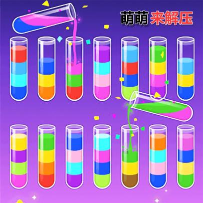 萌萌来解压是一款休闲小游戏,玩家在游戏中扮演倒水小能手,把每个试管里的水按一定的顺序来排序,游戏简单有趣,快来试试吧!
