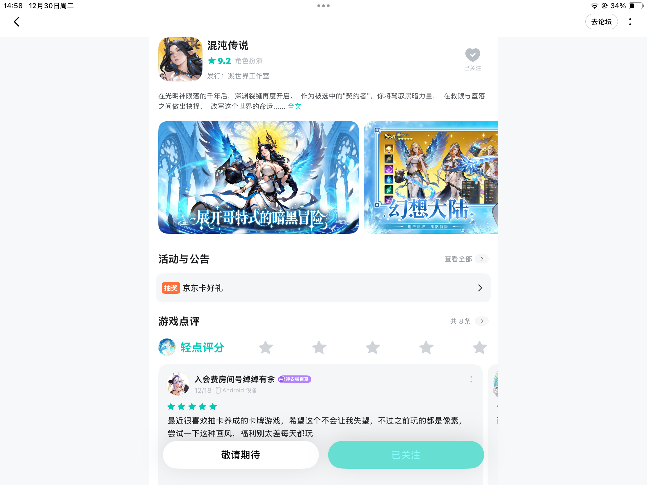 已关注预约混沌传说