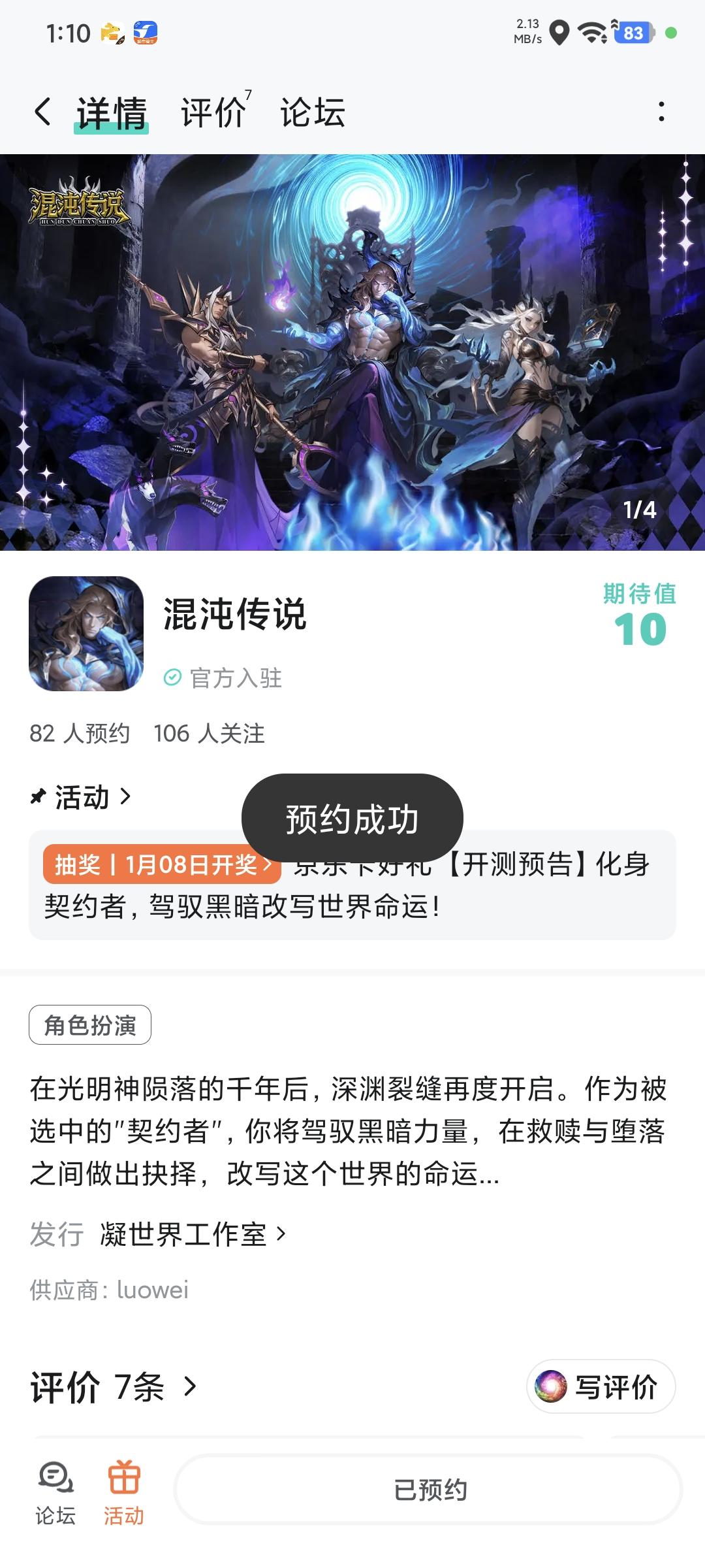 光明神陨落已逾千年,世间屏障日渐稀薄,沉寂许久的深渊裂缝终再开启,黑暗潮汐席卷大地!你,是否已准备好承载宿命,成为被选中的“契约者”?《混沌传说》,即将正式上线!驾驭黑暗力量,在救赎与堕落的十字路口坚定抉择,亲手改写这个世界的命运!🎁 开测专属福利:【京东卡抽奖活动】▶ 参与方式1.点击关注发帖账号并预约《混沌传说》且发新帖晒截图2.在本帖下方评论区分享发帖链接即可【奖品发放】到达开奖