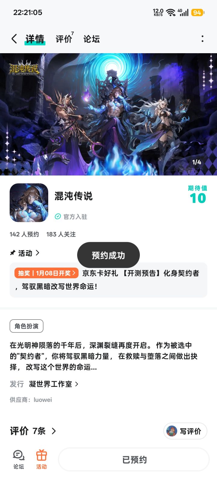 光明神陨落千年后,深渊裂缝再度开启。世界被黑暗笼罩,而你 —— 被选中的 “契约者”,将驾驭黑暗力量,在救赎与堕落之间抉择,改写世界的命运。为感谢各位契约者的支持,我们准备了一份小福利!【活动内容】关注官方账号 关注游戏,并在本帖留言,即可参与抽奖!【活动奖励】抽 1 位幸运契约者送出10 元京东卡 ×1【参与方式】【开奖方式】活动结束后,由 TapTap 系统随机抽取符合要求