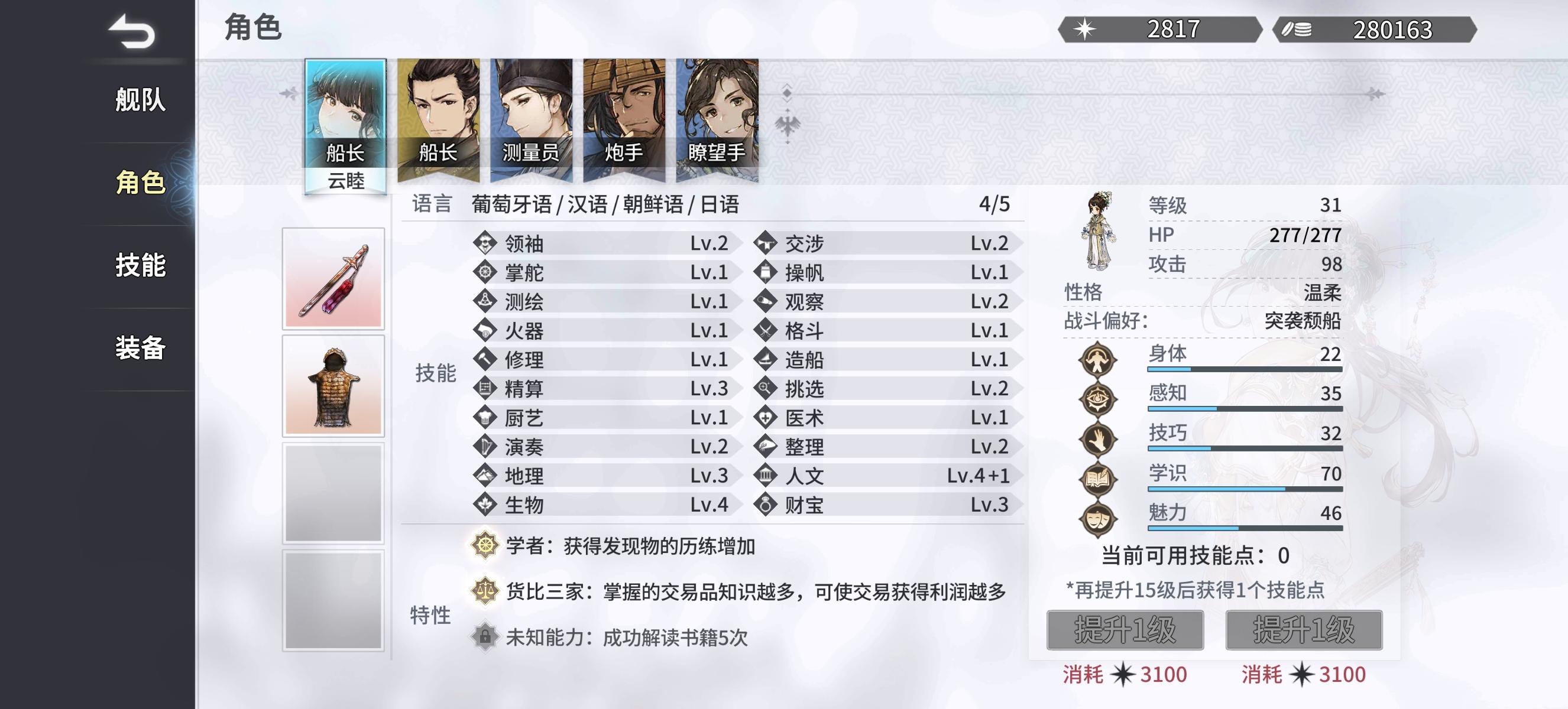 亮成分,大航海2,4,ol,起源,传说玩家。风帆纪元可以说是截止到2025年12月,最纯血的大航海4精神续作,造船和冒险简化融合了大航海ol的内容(冒险走格子借鉴了奇妙探险队),你叫光荣做都做不出这味来。最重要的是还给玩家留了一个加技能点的轮椅,pc和手游都能用,手游能重置技能点,感觉只要有钱能把角色技能都堆到15以上,好评,要是以后这个轮椅改没了我绝对要回来改差评!