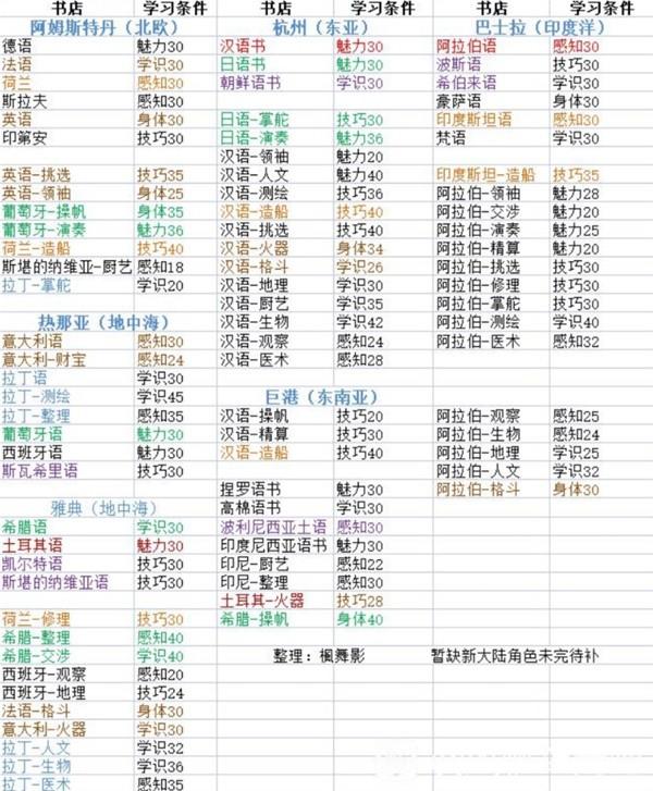 关键词:海员、船员、队友、收人、入队任务 (搬运自贴吧、官方群等) ps: 当前移动端版本中,玛琳、格拉迪奥、菲欧娜相关剧情均无法完成,请等待后续更新。 攻略汇总如下: 表格从左到右顺序为:名字、入队方法、专属装备、效果、专属装备获取方式、角色建议职业。 沈仕、泷川天海、陆礼渊、加拉瓦、阿吉: 纳赛尔、海伊尔、柯那利、安德莉亚、乔伊丝、威廉、罗瑞斯、玛琳、比阿特图斯、犹斯金、马尔提姆、安德里亚斯、